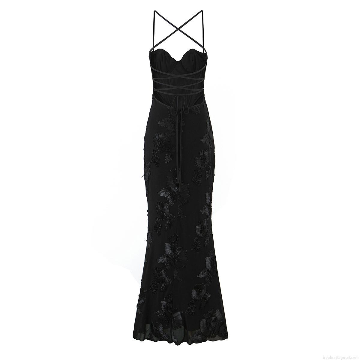 Three-dimensional Flowers, V-neck, Mesh Splicing, 3d Decals, Fishbone Support, Backless Strappy