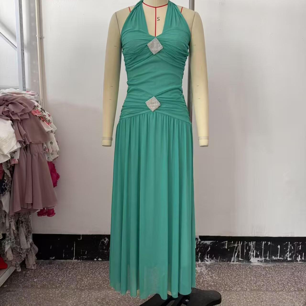 • Women's Sexy Halter Neck Backless Maxi Dress Teal Mesh Pleated Long Dress With Rhinestone Elegant Party Evening Formal Dress Sleeveless A-Line Gown