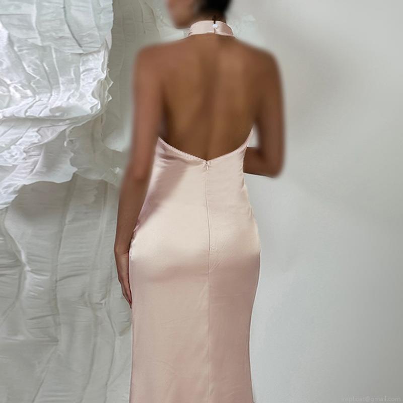 Solid Color, Bow, Neckband, Backless, Satin Finish, Fishtail Skirt