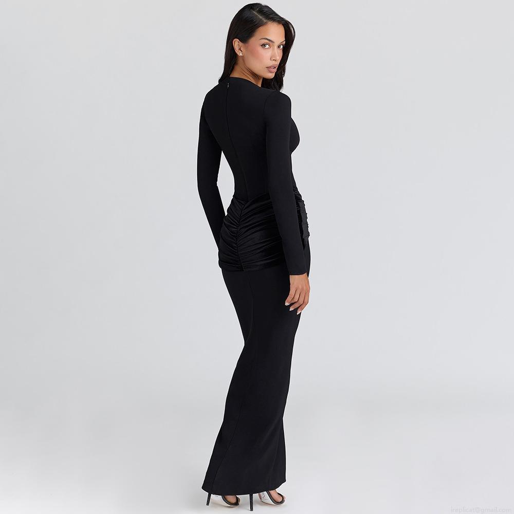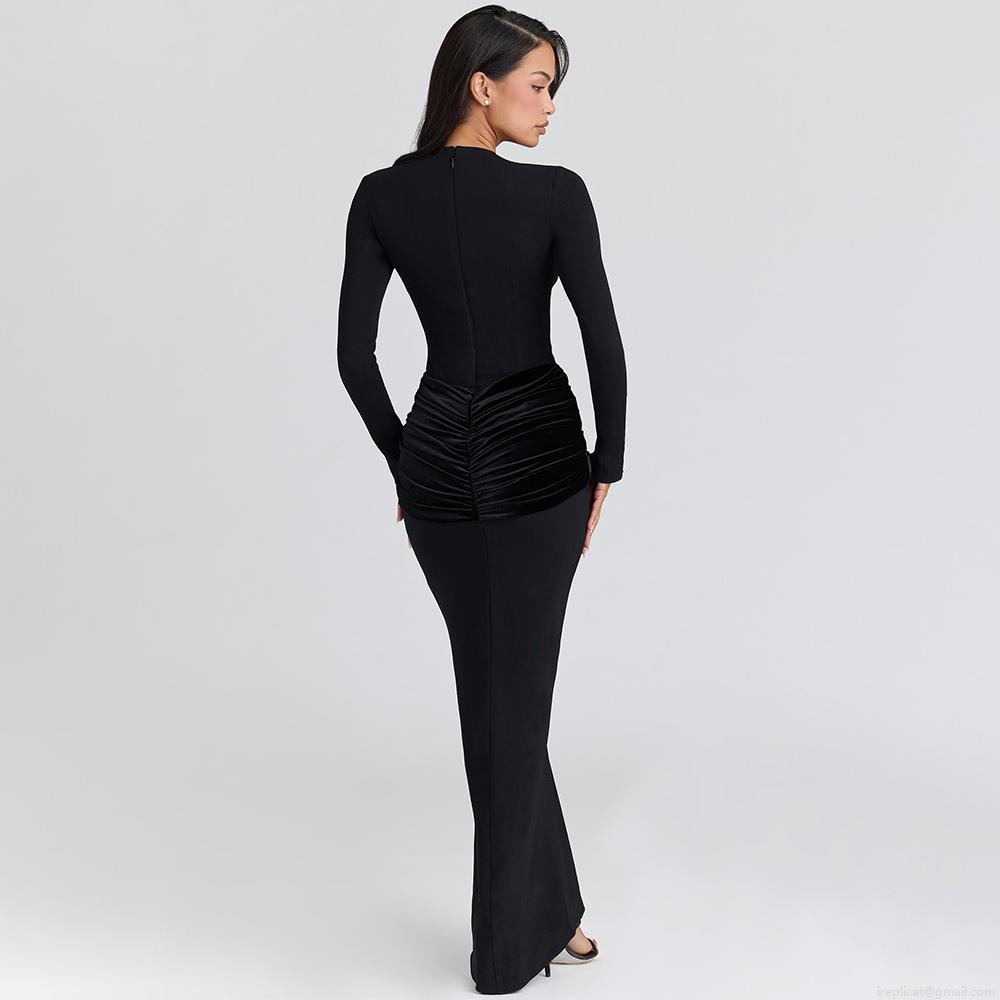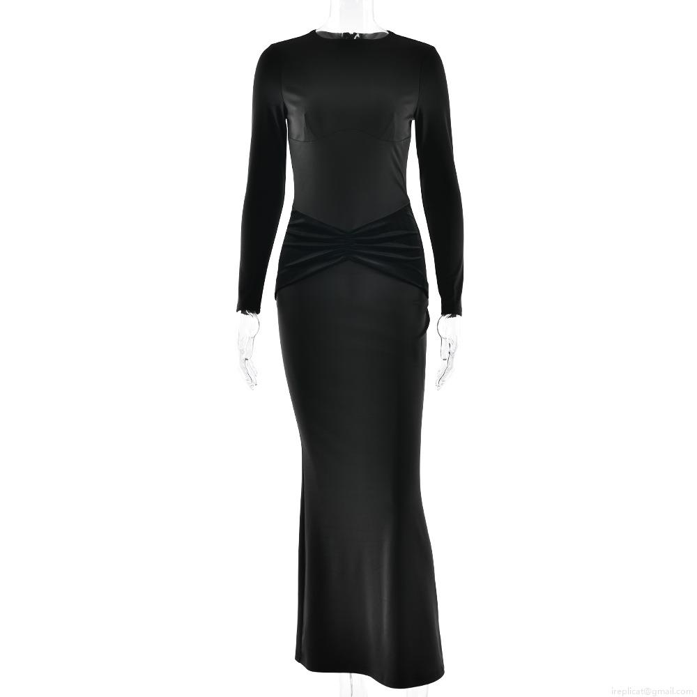 • Women's Sexy Long Sleeve Bodycon Evening Dress Polyester Gabardine Korean Velvet Patchwork Slim Fit Waist-cinched Pleated Maxi Dress For Party Formal Wedding Guest