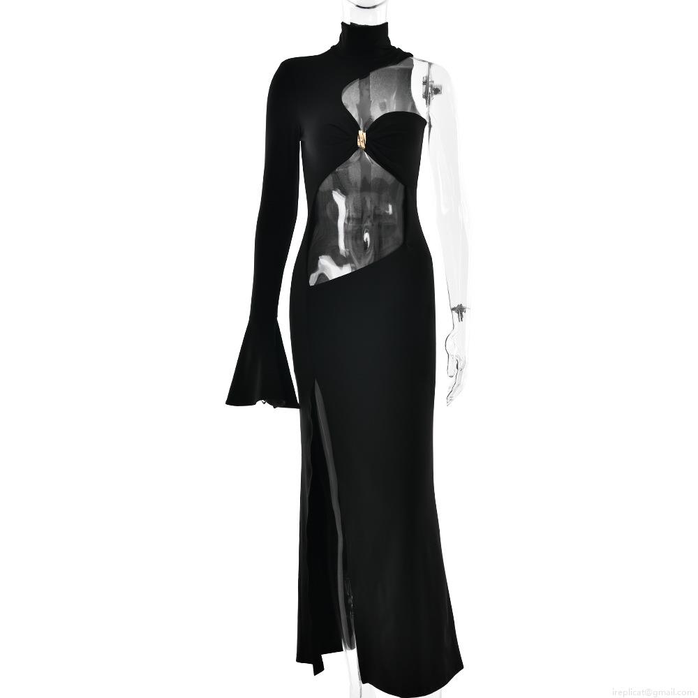 Women's Sexy One Shoulder Cutout Maxi Dress Milk Silk Polyester Asymmetrical High Slit Metal Ring Bodycon Dress For Club Party Night Out