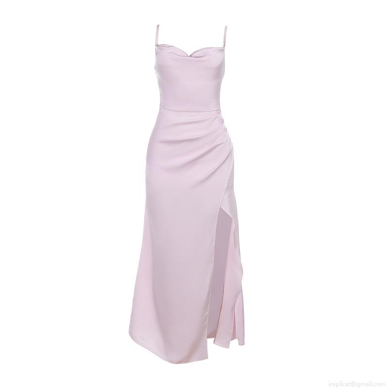 • Women's Sexy Satin Cowl Neck Maxi Dress Ruched Spaghetti Strap Side Slit Bodycon Polyester Evening Party Club Dress