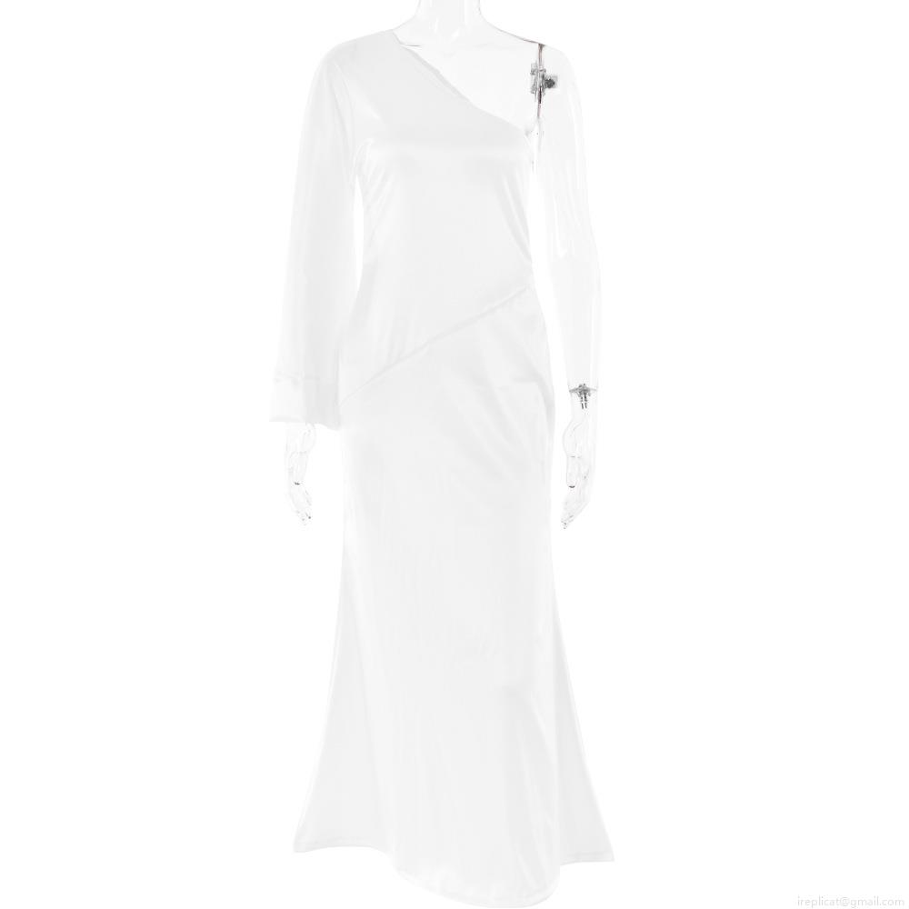 • Women's Sexy Satin One Shoulder Long Sleeve Backless Maxi Dress Elegant Bodycon Evening Party Gown Asymmetrical Neck Satin Prom Dress for Women