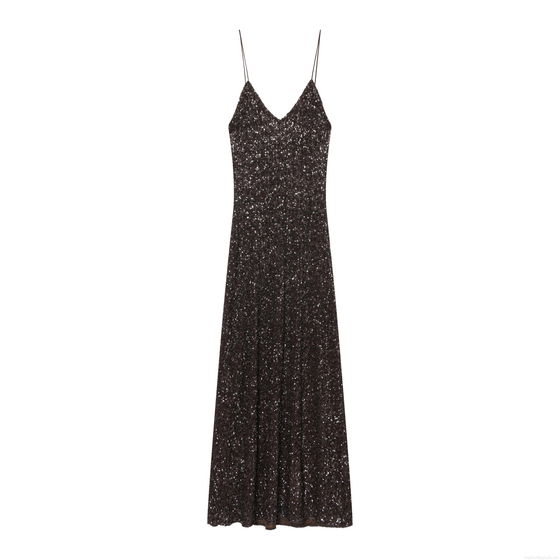 Solid Color, Sequin Decoration, Deep V-neck, Thin Straps