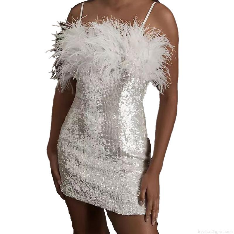 Solid Color, Splice, Sequin, Backless, Feather Decorations
