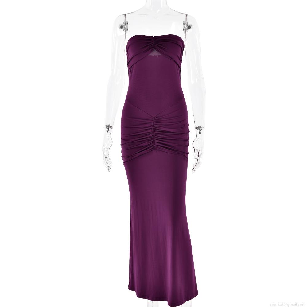 • Women's Sexy Strapless Ruched Maxi Dress Backless Bodycon Slim Fit Evening Party Gown Polyester Milk Silk Clubwear