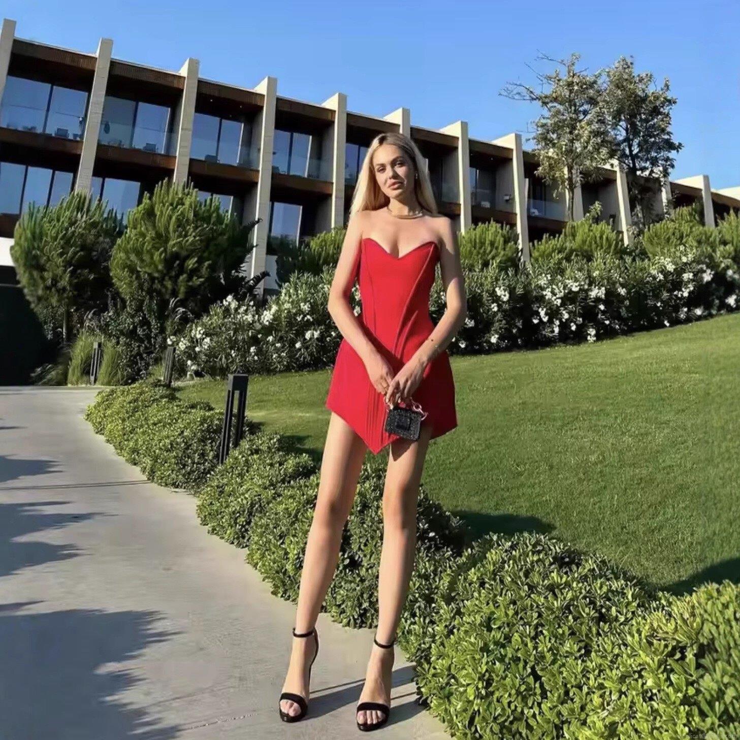 • Women's Sexy Strapless Satin Corset Dress Back Lace-up Fishbone Supportive Mini Cocktail Evening Party Dress Elegant Solid Color Slim Fit Bodycon Summer Dress