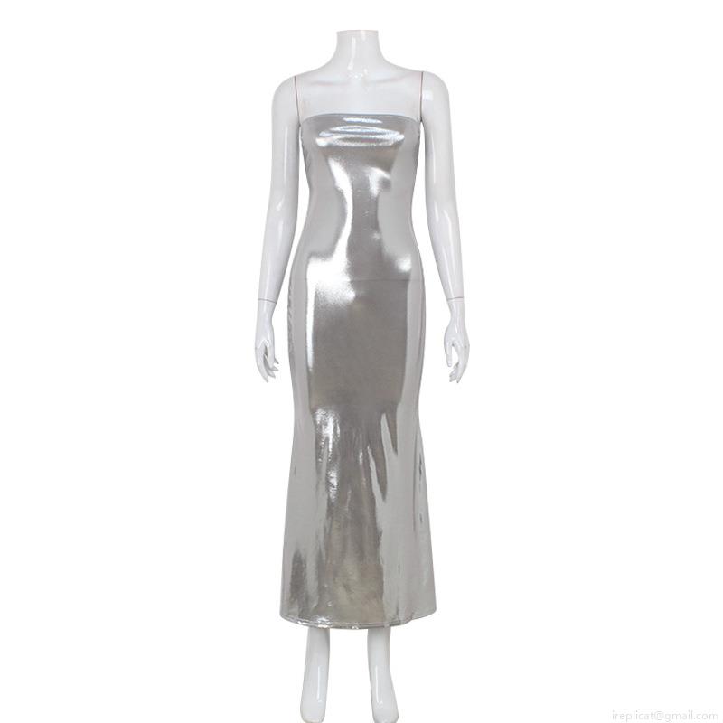 • Women's Sexy Strapless Tube Top Bodycon Long Dress Metallic Luster Polyester Spandex Fish Tail Evening Party Clubwear Maxi Dress