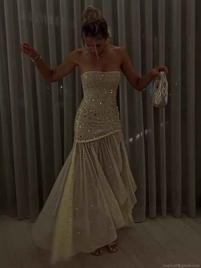 • Women's Strapless Sequin Evening Gown Sexy Ruffle High Slit Maxi Dress Elegant Bodycon Party Wedding Guest Prom Dress Polyester Mesh Sequin Long Dress