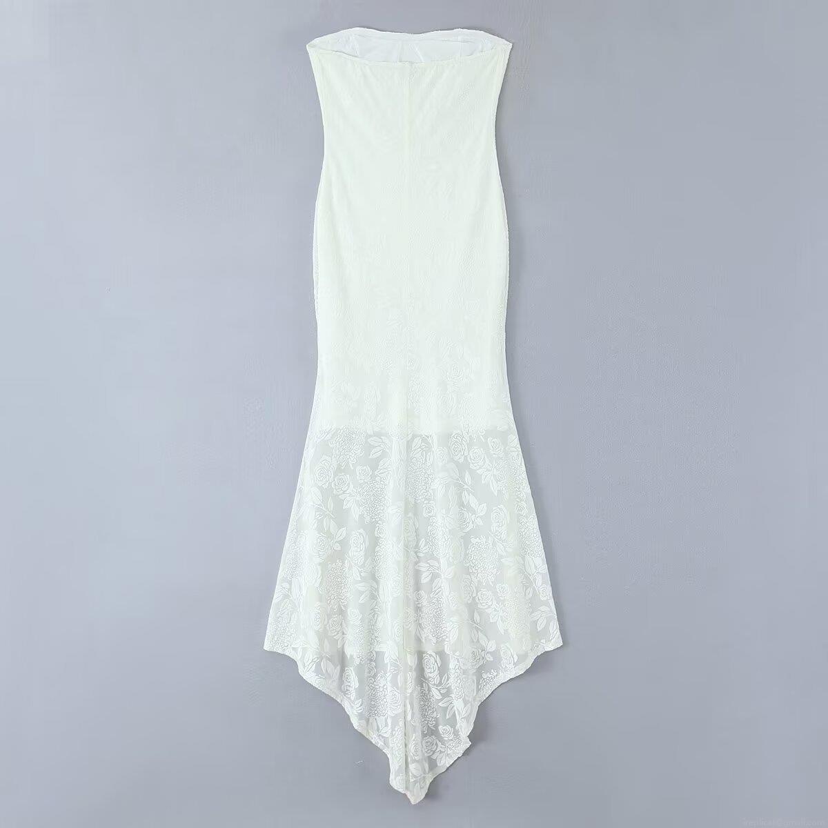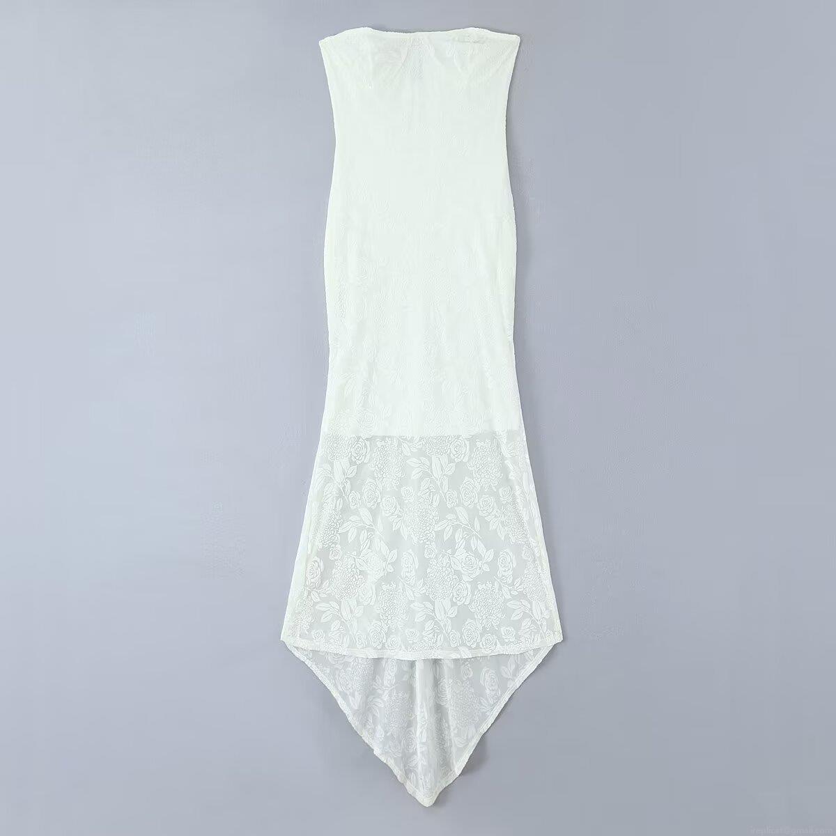 Women's White Off-Shoulder Lace Evening Dress With Removable Faux Fur Collar Irregular Patchwork Bodycon Maxi Gown For Party Wedding Formal Banquet
