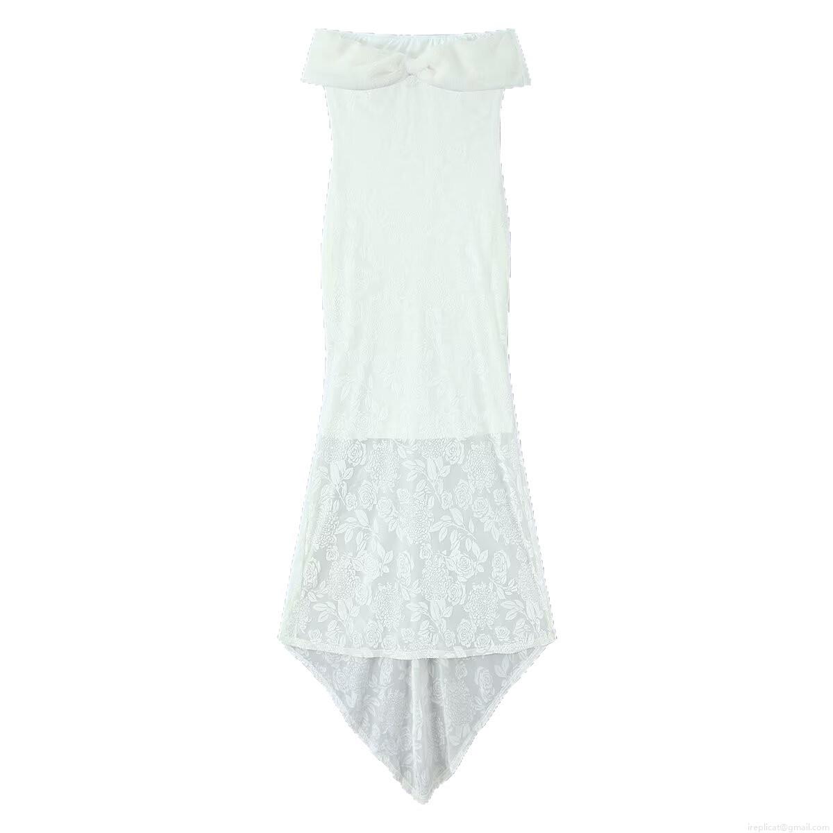• Women's White Off-Shoulder Lace Evening Dress With Removable Faux Fur Collar Irregular Patchwork Bodycon Maxi Gown For Party Wedding Formal Banquet
