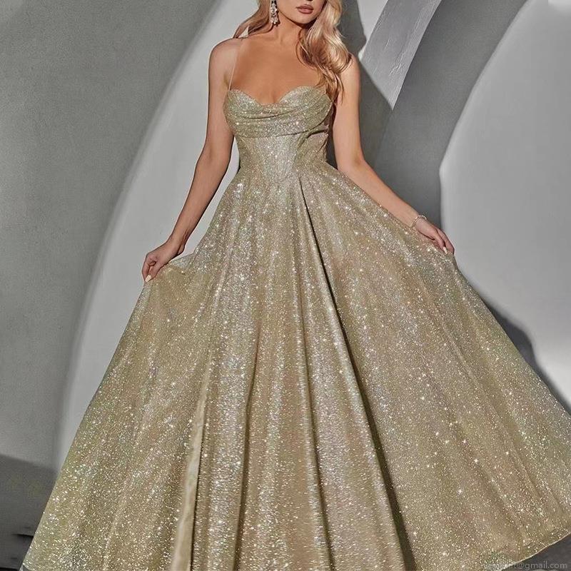 This Elegant Sequin Glitter Maxi Evening Dress is **absolutely glamorous and breathtaking**! The shiny glitter sequins shine beautifully under light, making you stand out at any event. The flattering V-neck and delicate spaghetti straps offer a feminine, sexy look, while the backless lace-up design adds a stylish and adjustable fit. The high slit creates graceful movement and a flattering silhouette. Perfect for weddings, prom, parties and formal occasions. Made with high-quality fabric, comfortable to wear all night. Fits true to size with fine stitching and excellent workmanship. Stunning, elegant and confidence-boosting — highly recommend! 5 stars!