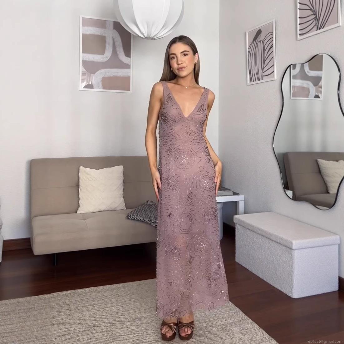 This Elegant Women's Deep V-Neck Evening Gown is **absolutely stunning and luxurious**! Crafted with delicate mesh fabric and exquisite heavy beadwork & sparkling sequins, it shines brilliantly and shows premium texture. The flattering deep V-neck and sleeveless design highlight the graceful shoulder and neckline perfectly, enhancing feminine charm. The flowy maxi length creates a slim, elegant silhouette with celebrity-style glamour. Soft, comfortable to wear all night, with meticulous stitching and great tailoring. True to size, perfect for weddings, banquets, formal events and special occasions. Super elegant, eye-catching and worth buying — highly recommend! 5 stars!