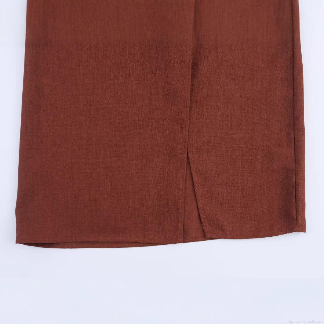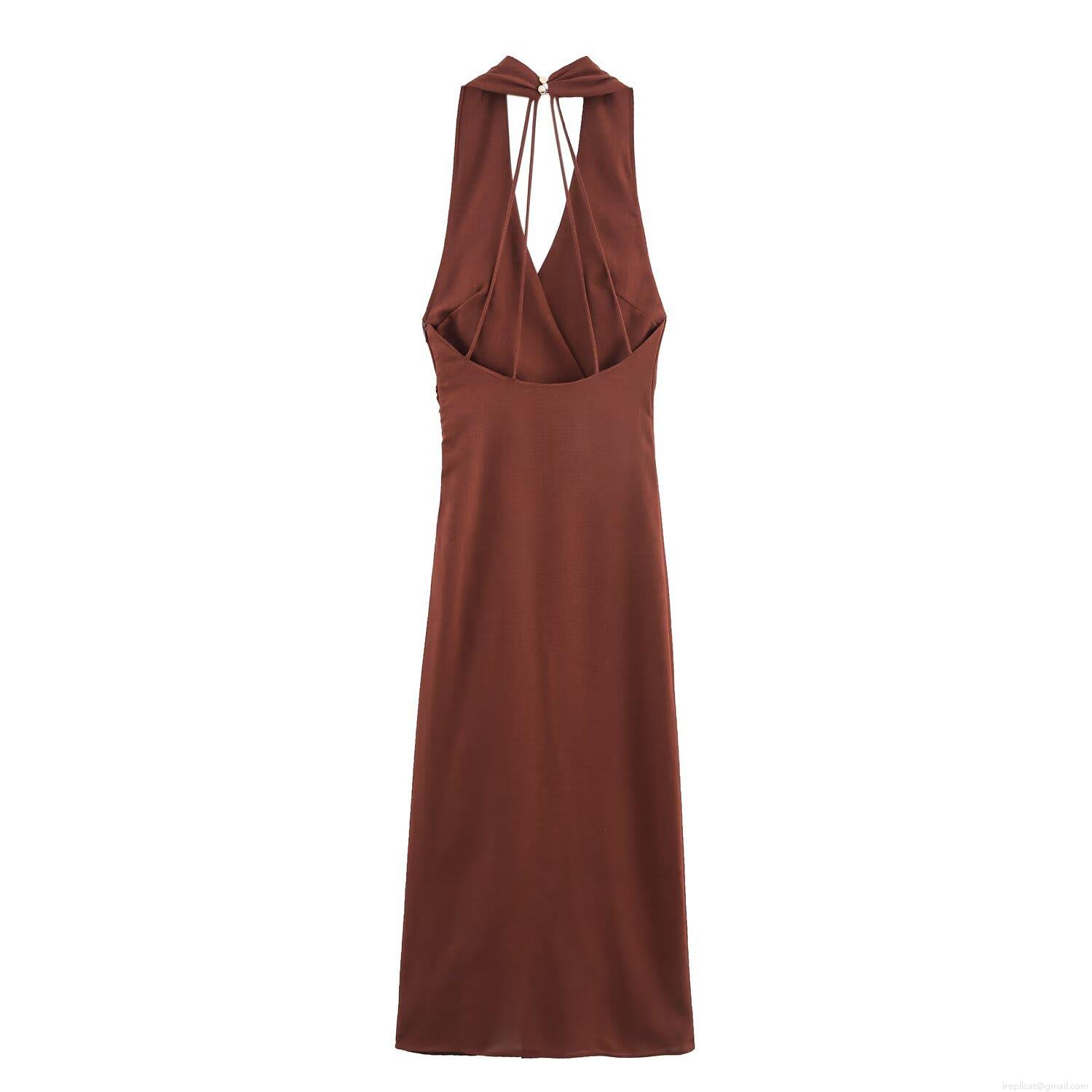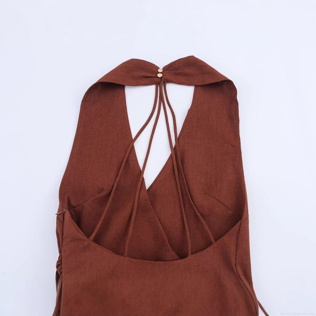 • Women's Summer Halter Backless Midi Dress Sexy Ruched Side Slit Evening Party Dress With Gold Metal Ring Decoration Linen Blend Bodycon Clubwear