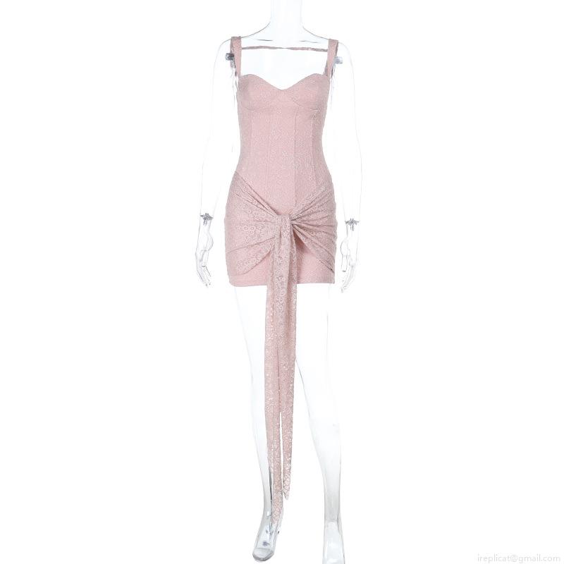 Sexy Backless Lace Mini Dress For Women Elegant Sling Streamer Ribbons Corset Slim Fit Party Club Evening Bodycon Short Dress