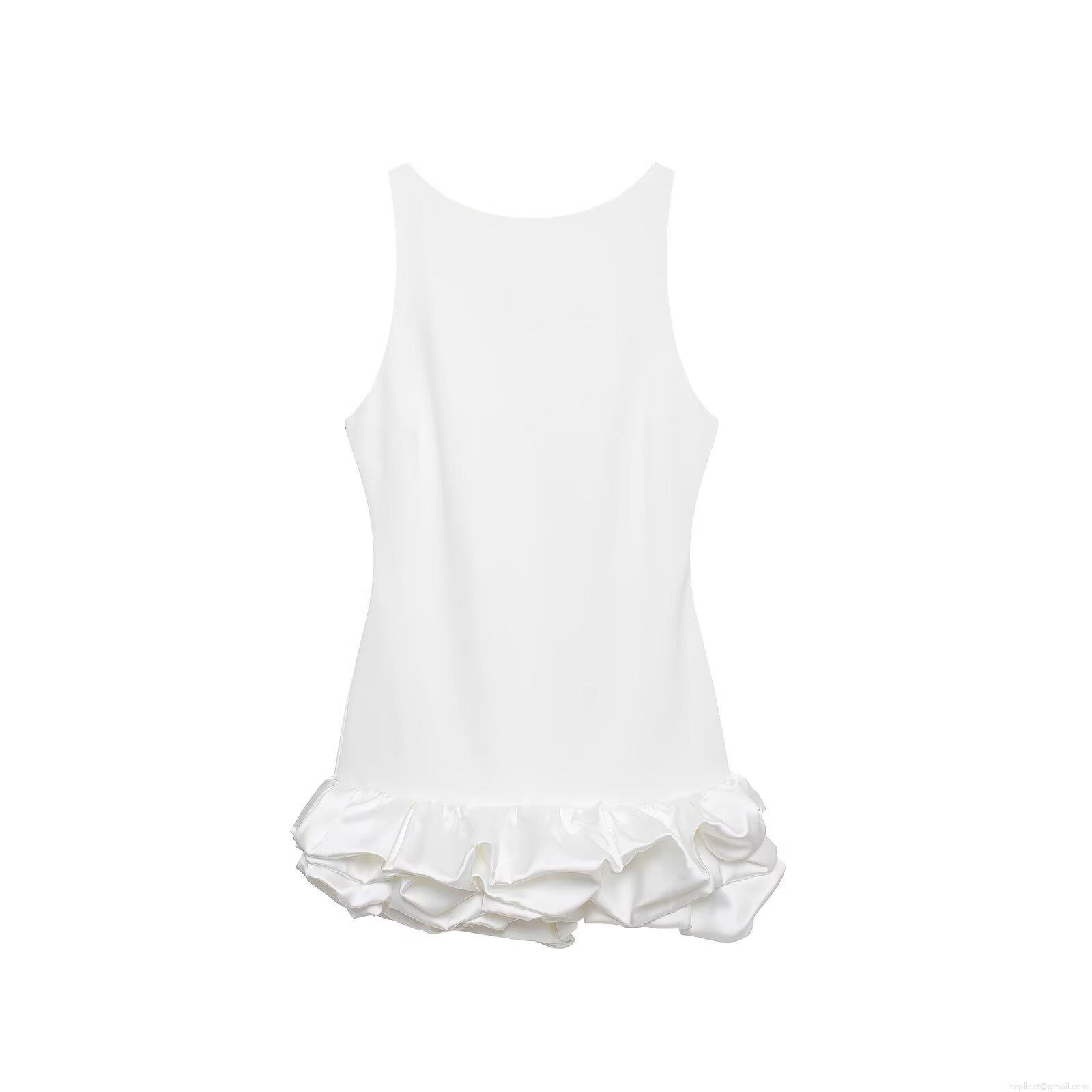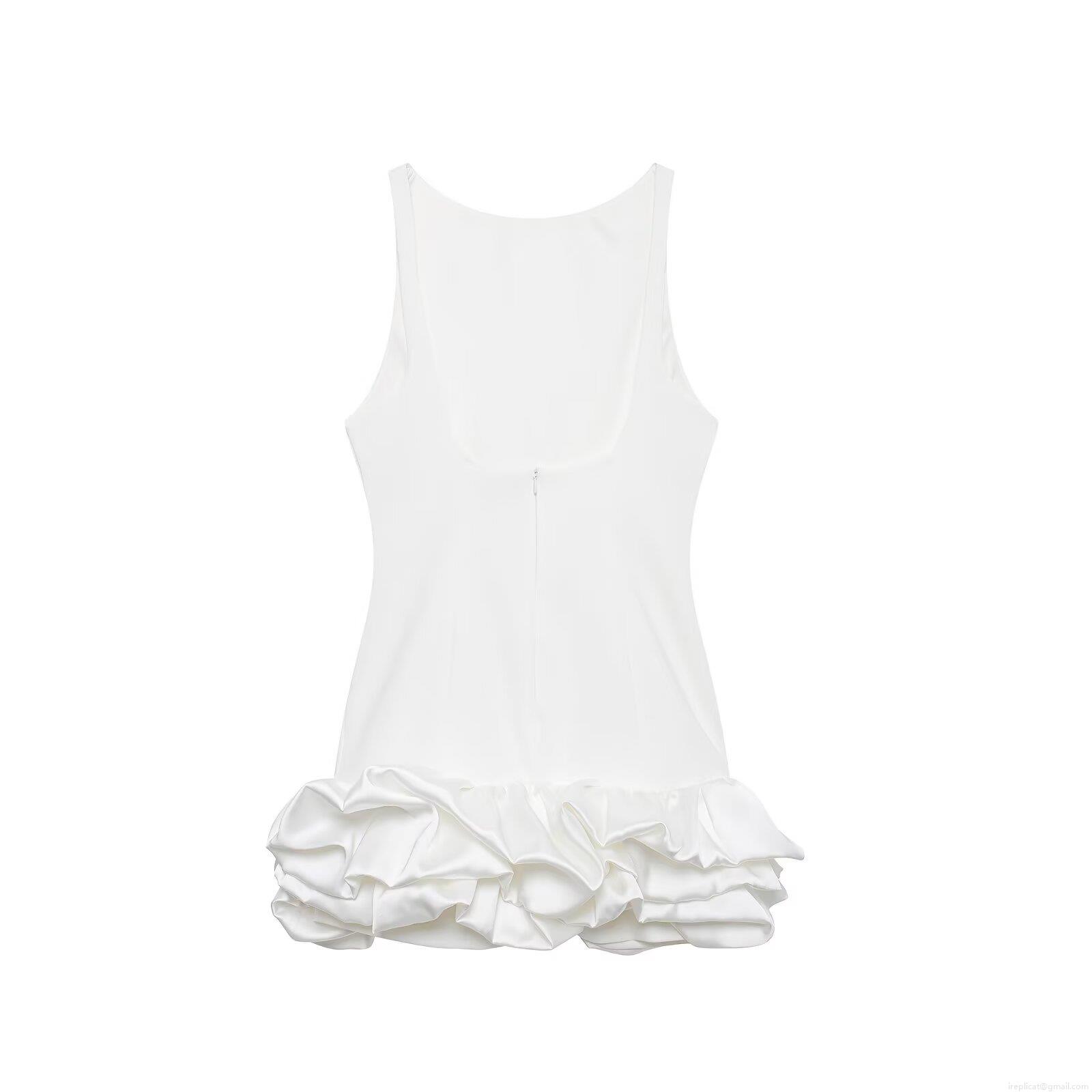 • Sexy Backless Mini Dress Round Neck Sleeveless Ruffle Hem Polyester Satin Sequin Bodycon Bubble Skirt For Women Party Club Night Out Evening Wear