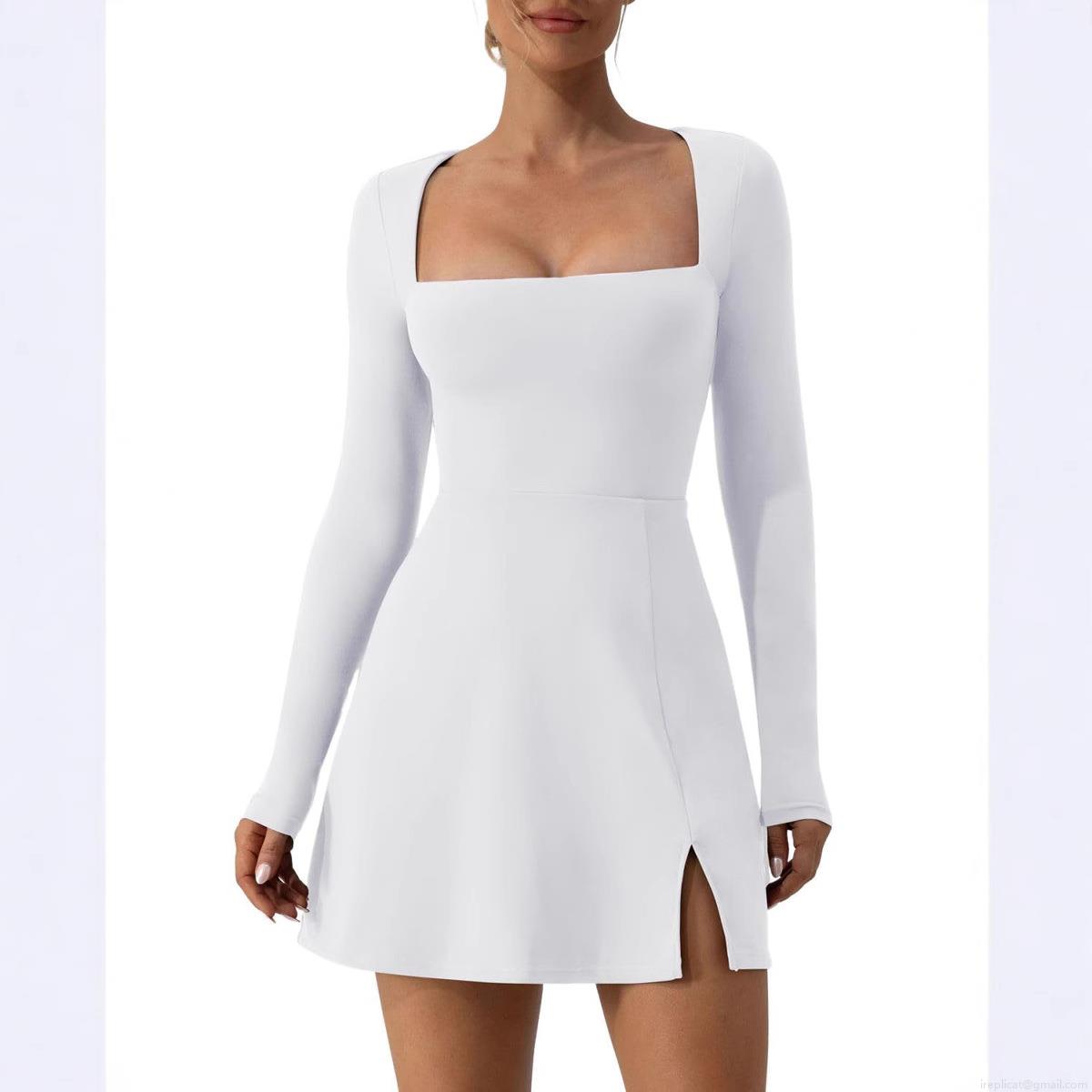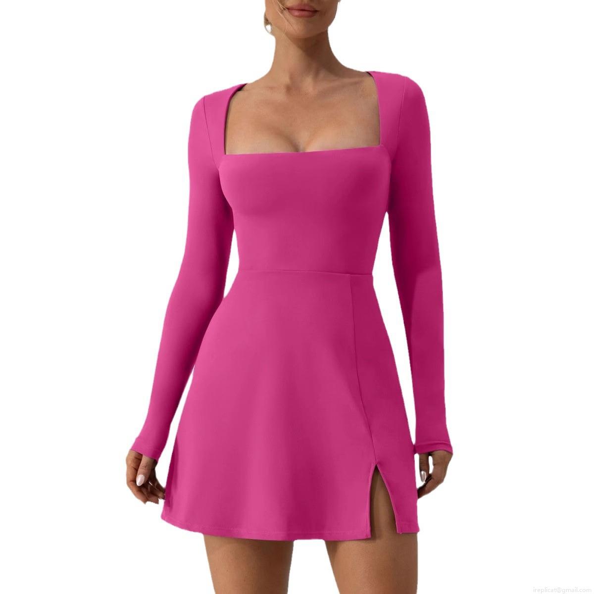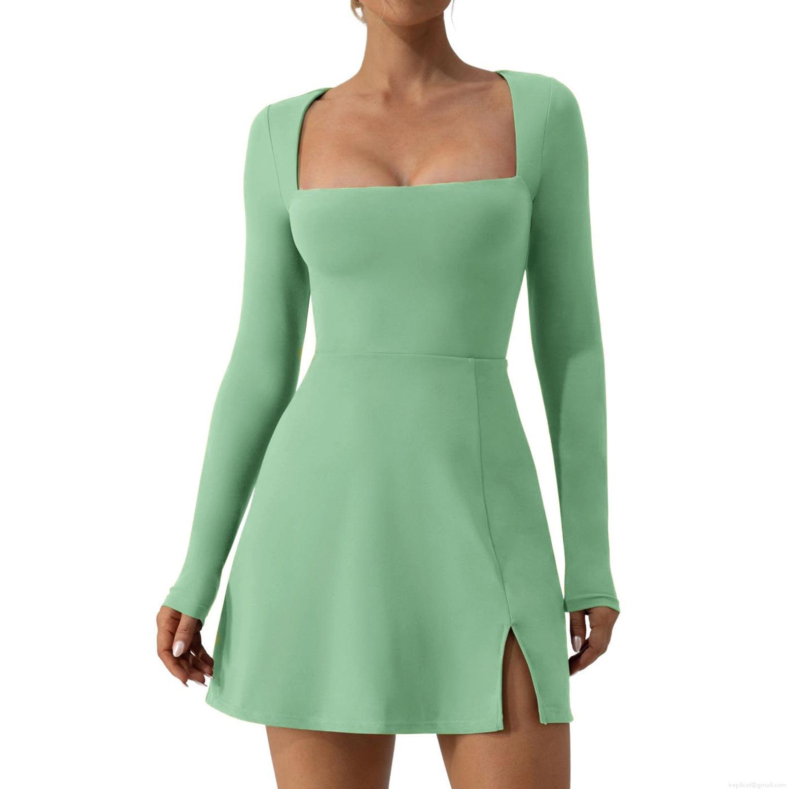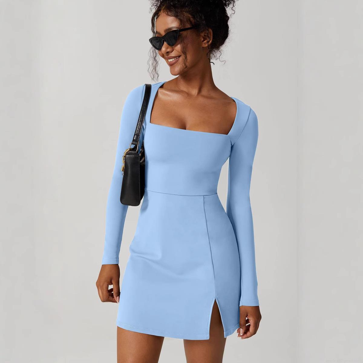 • Sexy Bodycon Mini Dress For Women Square Neck Long Sleeve Side Slit Polyester Spandex Blend Slim Fit Party Clubwear Casual Dress