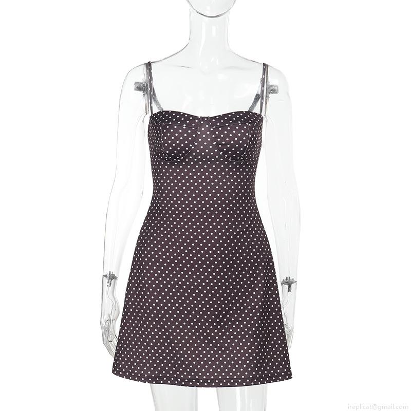 • Sexy Polka Dot Spaghetti Strap Mini Dress Slim Fit Sleeveless V-Neck Backless Summer Party Clubwear Dress For Women