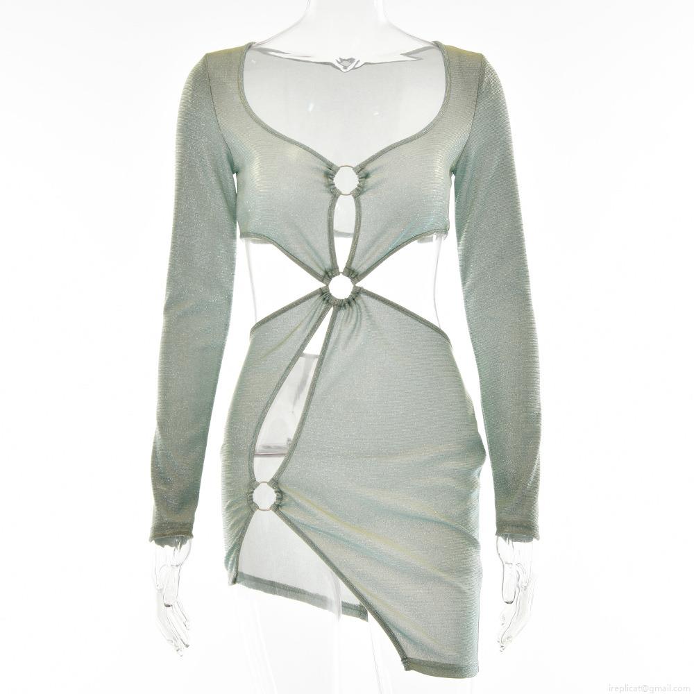 • Sexy Women's Cut-out Long Sleeve Mini Dress Sparkling Sequin Metal Ring Detail Bodycon Party Nightclub Dress Polyester Irregular Hem Outfits