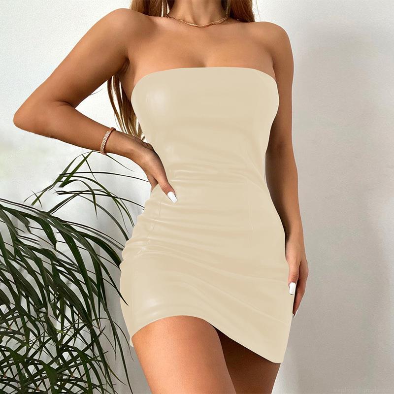 Solid Color, Off-shoulder, Strapless, Leather Texture, Tight-fitting Hip Body