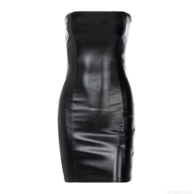 • Sexy Women's PU Leather Strapless Mini Dress Bodycon Solid Color Tube Top Party Dress High Waist Sleeveless Evening Clubwear Faux Leather Dress