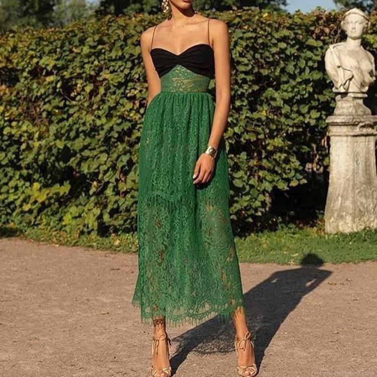 • Vintage Elegant Women's Lace Maxi Dress Sexy V-Neck Hollow Out Color Block Sleeveless Polyester Long Dress For Vacation Wedding Party Banquet