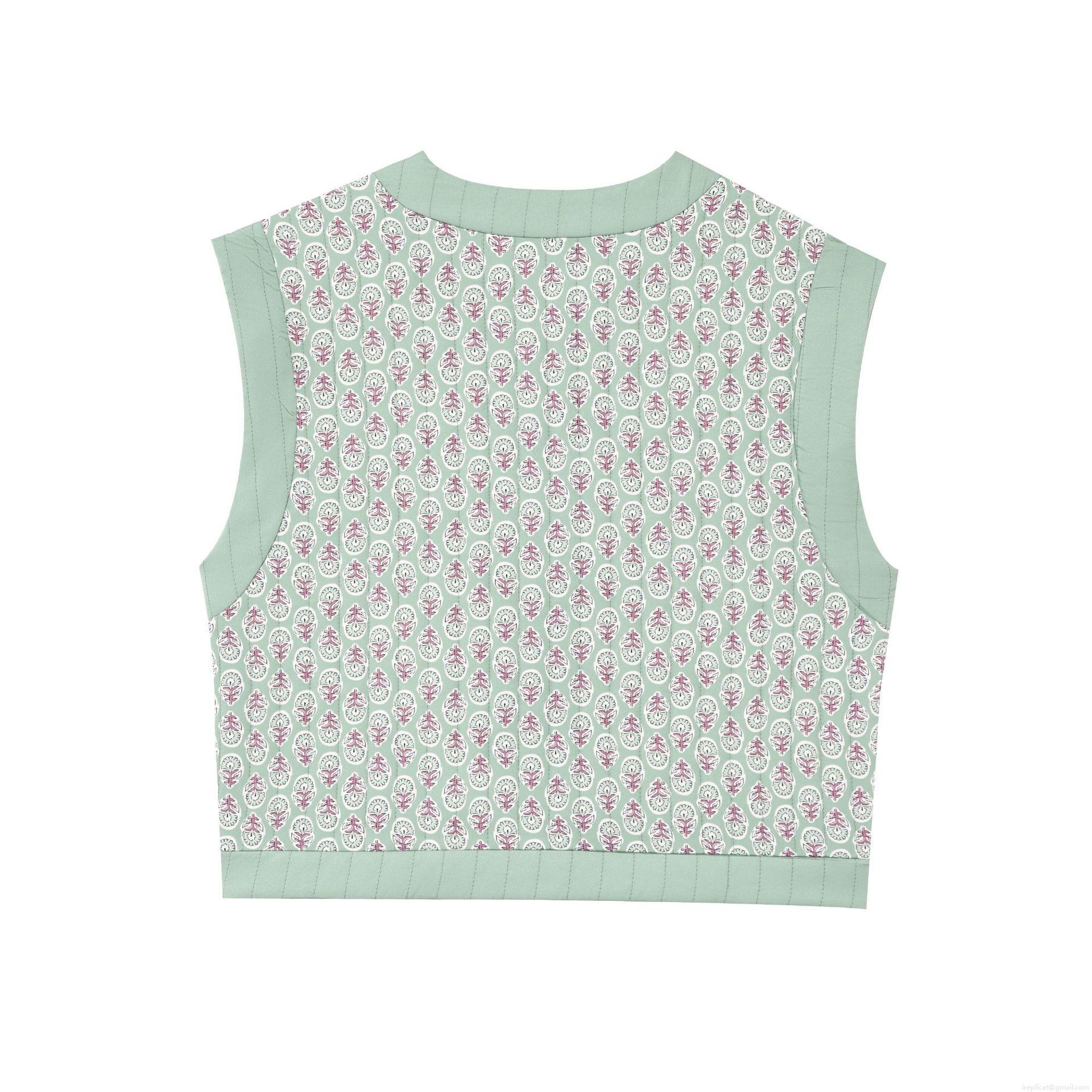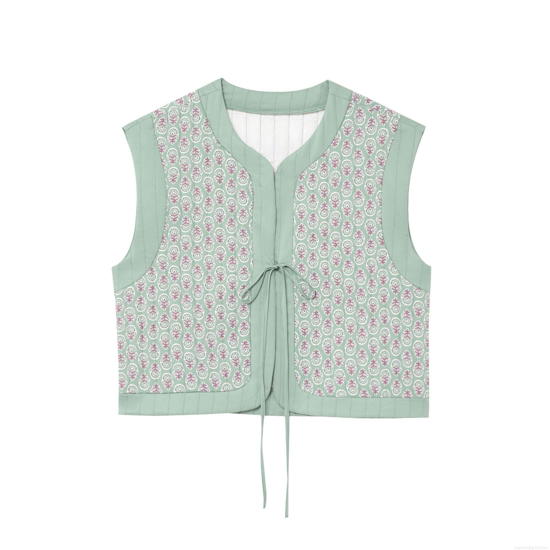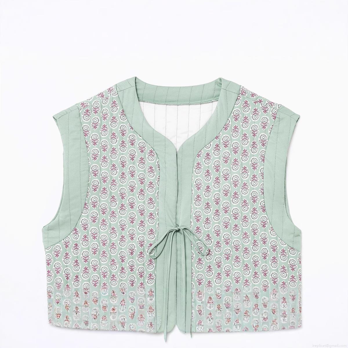 • Vintage Floral Print Quilted Vest For Women Sleeveless Tie-Front Waistcoat Retro Cottagecore Style Padded Tank Top Spring Autumn Outerwear