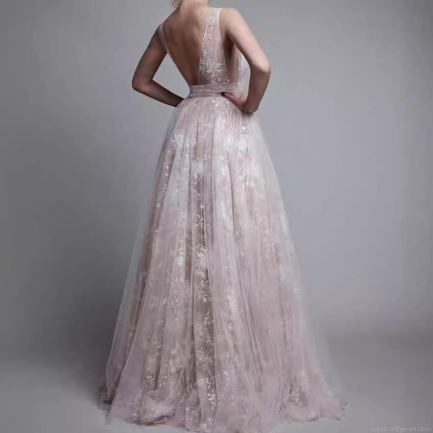 5 stars – This lace mesh long evening gown is **absolutely exquisite and romantic**! The delicate floral embroidery and soft mesh fabric are lightweight, elegant and full of feminine charm. The sexy deep V-neck and backless design highlight your figure beautifully in a classy way. The maxi length flows gracefully, creating a slim and flattering silhouette. Premium stitching, excellent tailoring, comfortable to wear all night, and true to size. Perfect for weddings, banquets, parties and formal occasions. Elegant, stunning and full of luxury — highly recommend!