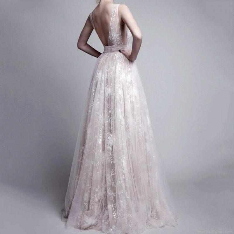 Women's Elegant Sleeveless Deep V Neck Lace Evening Dress Sequin Embroidery Mesh Floor Length Wedding Party Gown Formal Maxi Dress