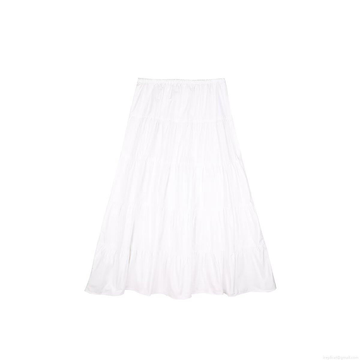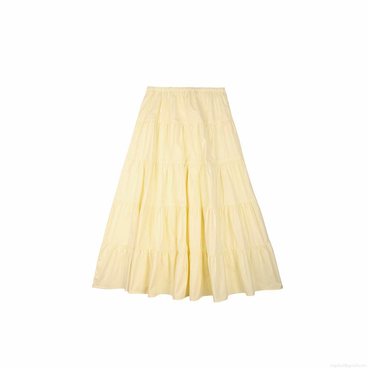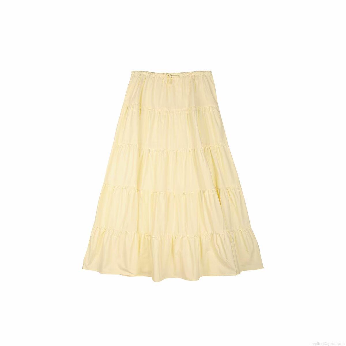 • Women Cotton Tiered Midi Skirt Elastic Waist Pleated Patchwork Loose Casual Summer Street Style Cake Skirt For Women Solid White Yellow