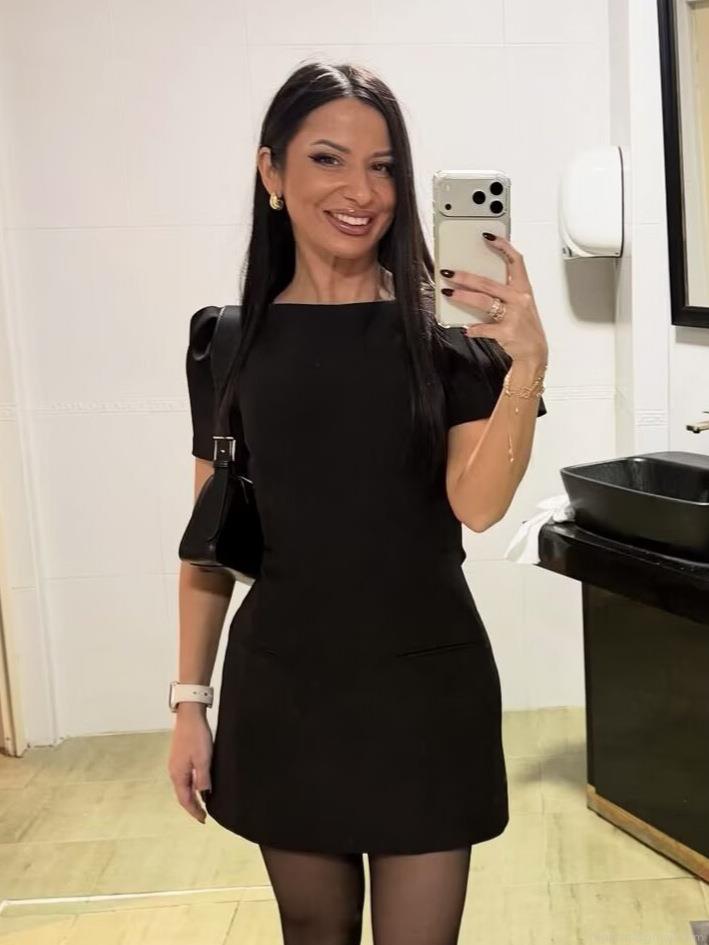 • Women Elegant Solid Color Polyester A-Line Mini Dress Round Neck Short Puff Sleeve Pleated Decorative Pocket Dress For Casual Party Streetwear Lady Slim Fit Short Dress