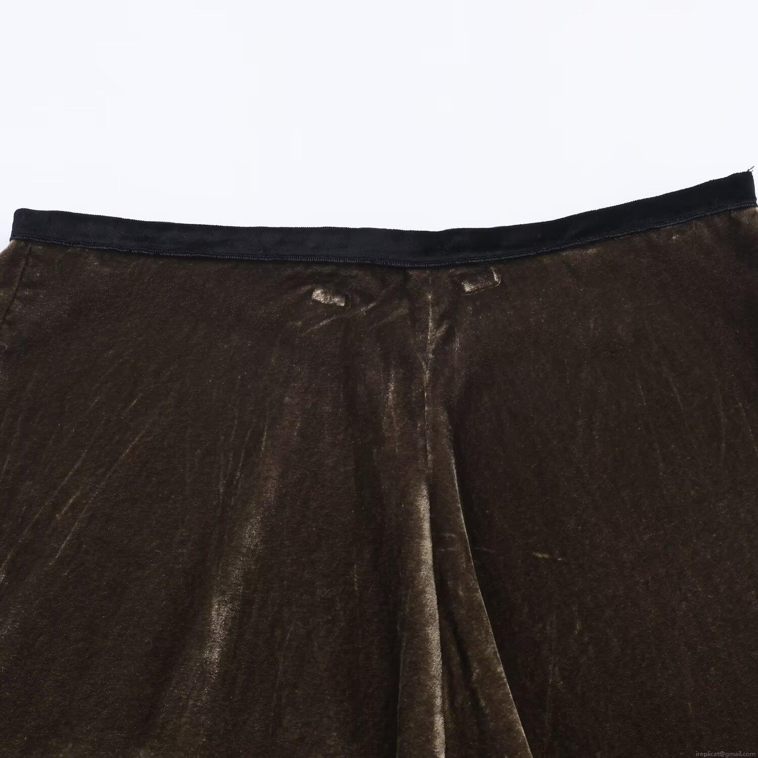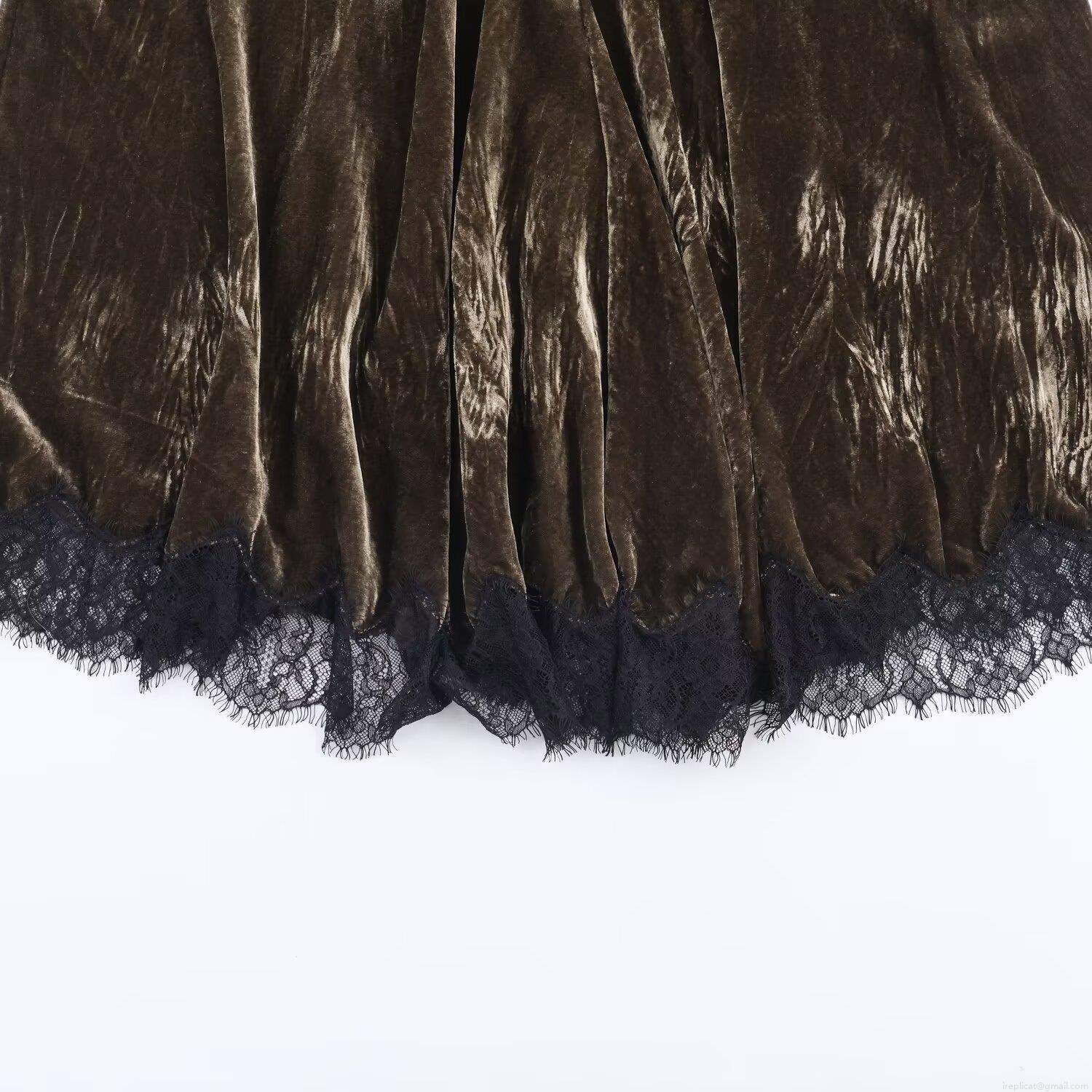 • Women Elegant Velvet Lace Patchwork Midi Skirt High Waist A-Line Swing Skirts For Autumn Winter Commute Office Lady Solid Color Vintage Skirt