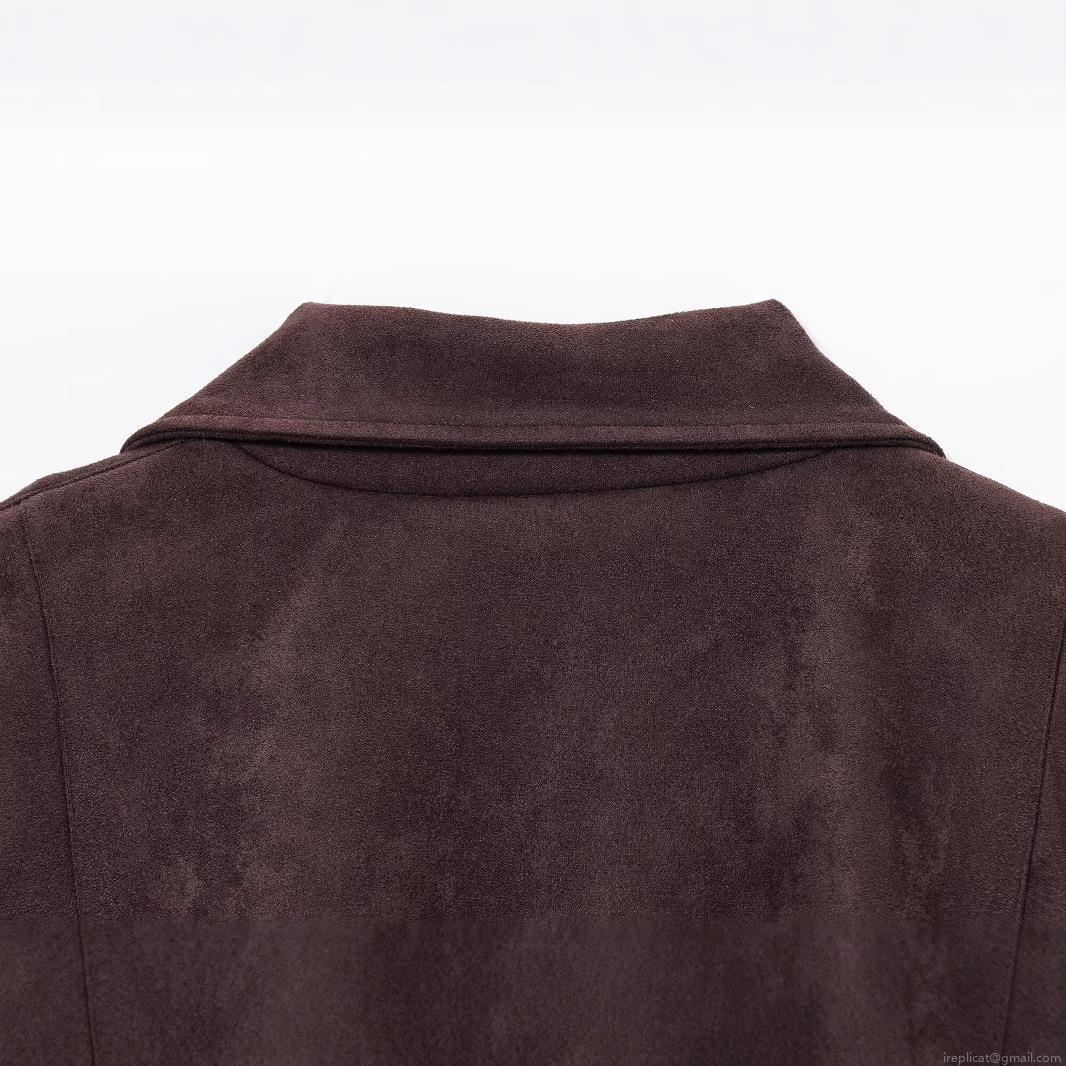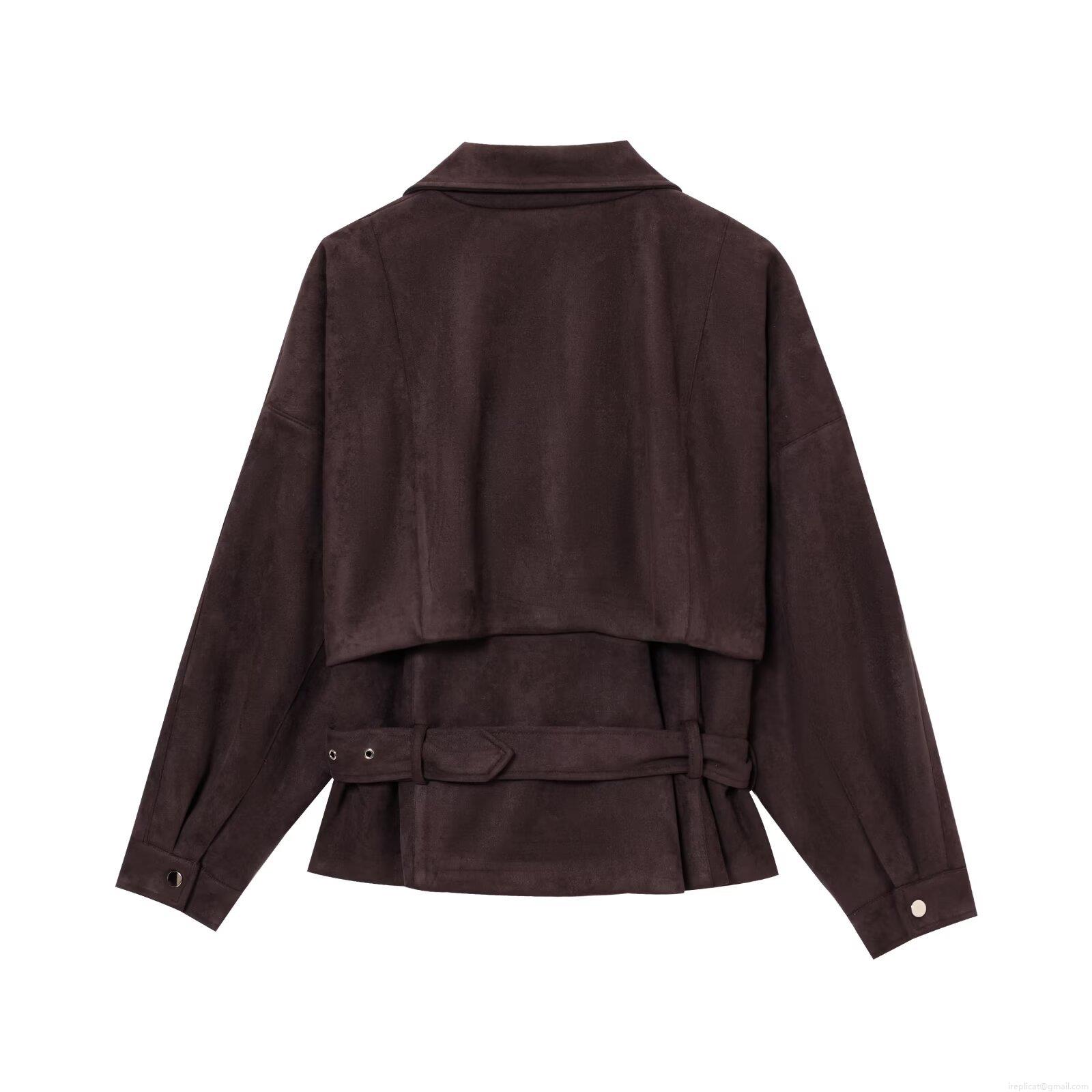 • Women Fashion Faux Suede Biker Jacket With Belt Solid Color Vintage Moto Style Long Sleeve Zipper Coat Streetwear For Women