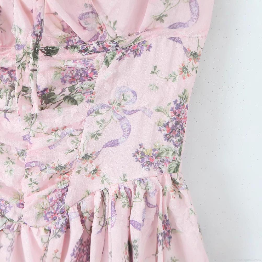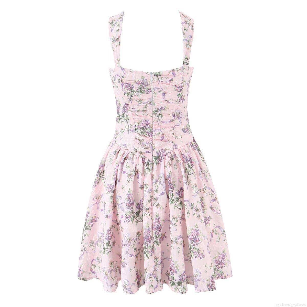 • Women Floral Print Cami Mini Dress Square Neck Lace-up Backless Sleeveless A-line Dress For Summer Party Date Night Cottagecore Style Clothing