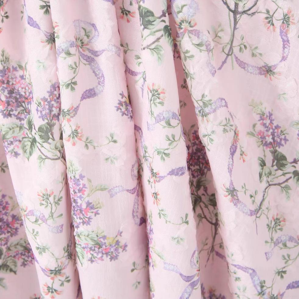 Wood Ear Edge, Floral Pattern, Pleats, Ribbon, Printing, Straps, Gathering, Purple-red Flowers
