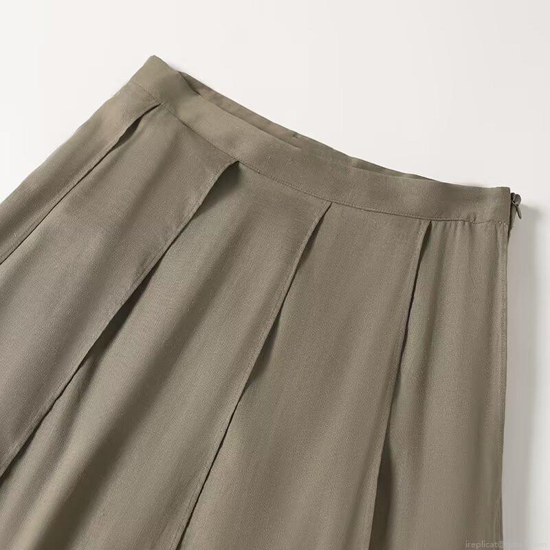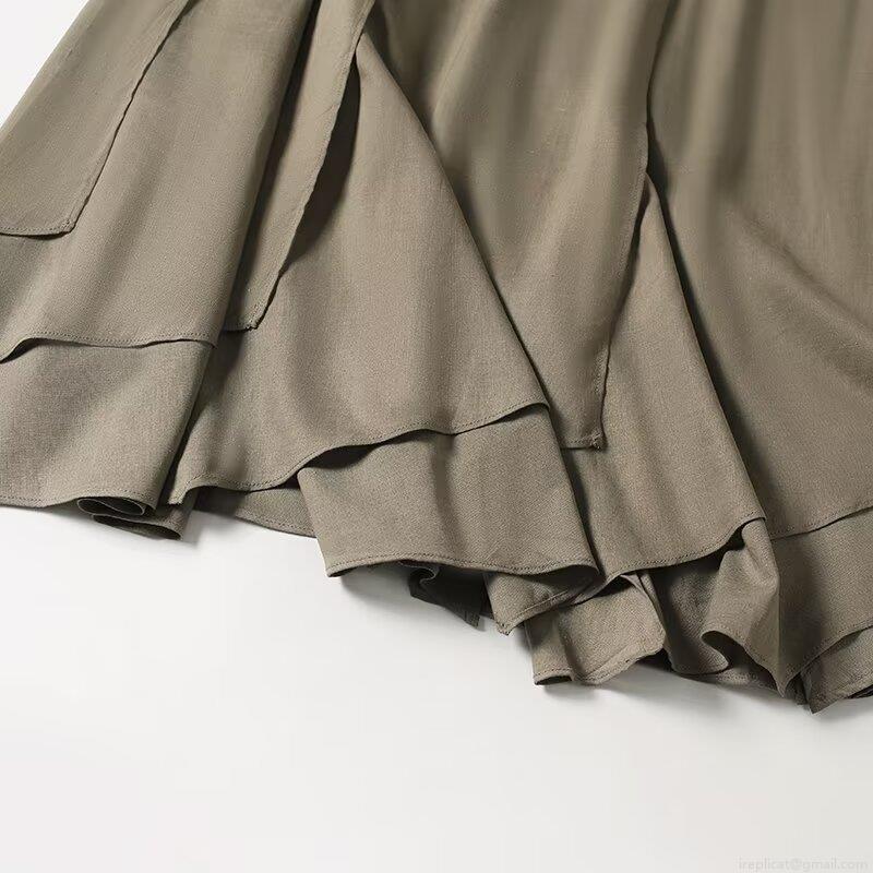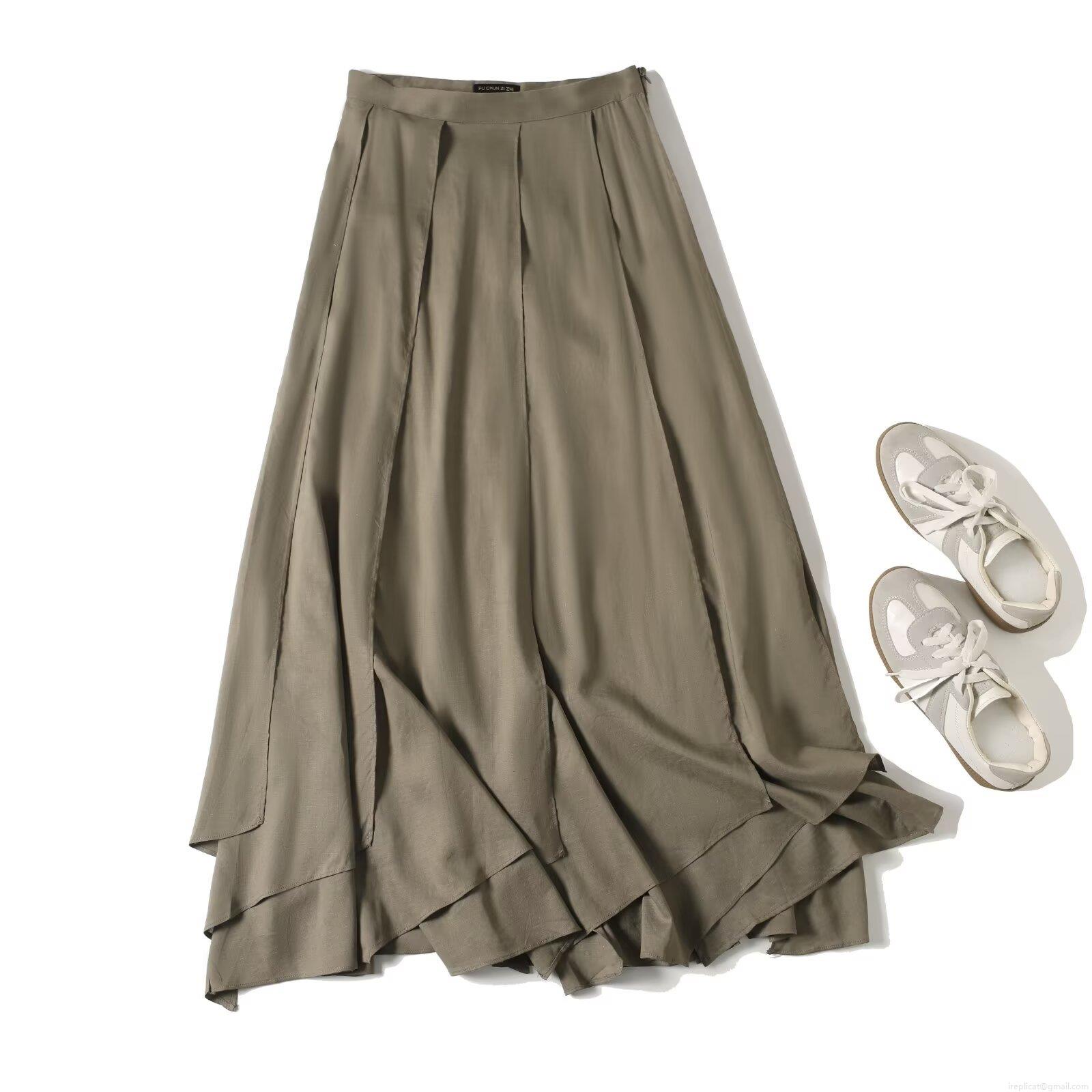 • Women High Waist Pleated Midi Skirt Hemp Viscose Blend Irregular Hem Solid Color Casual Vacation Fashion Skirt For Women