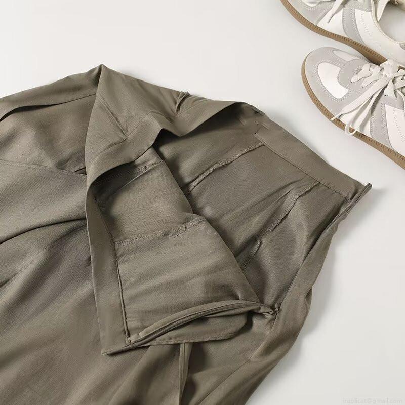 Solid Color, Pleats, High-waisted, Irregular Hem, Herringbone Pleats