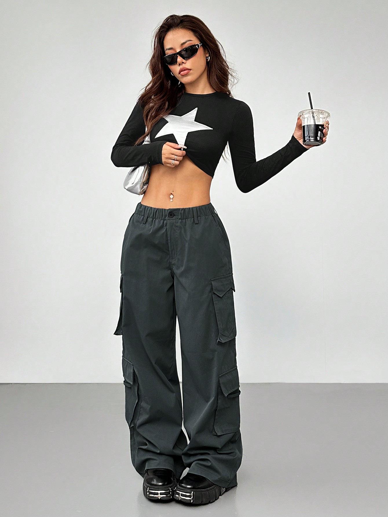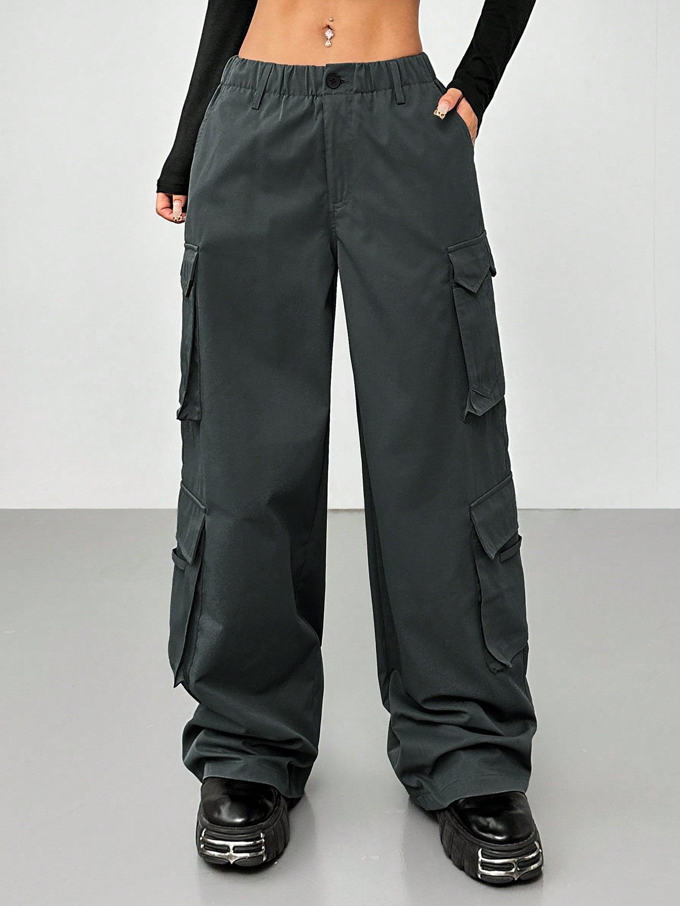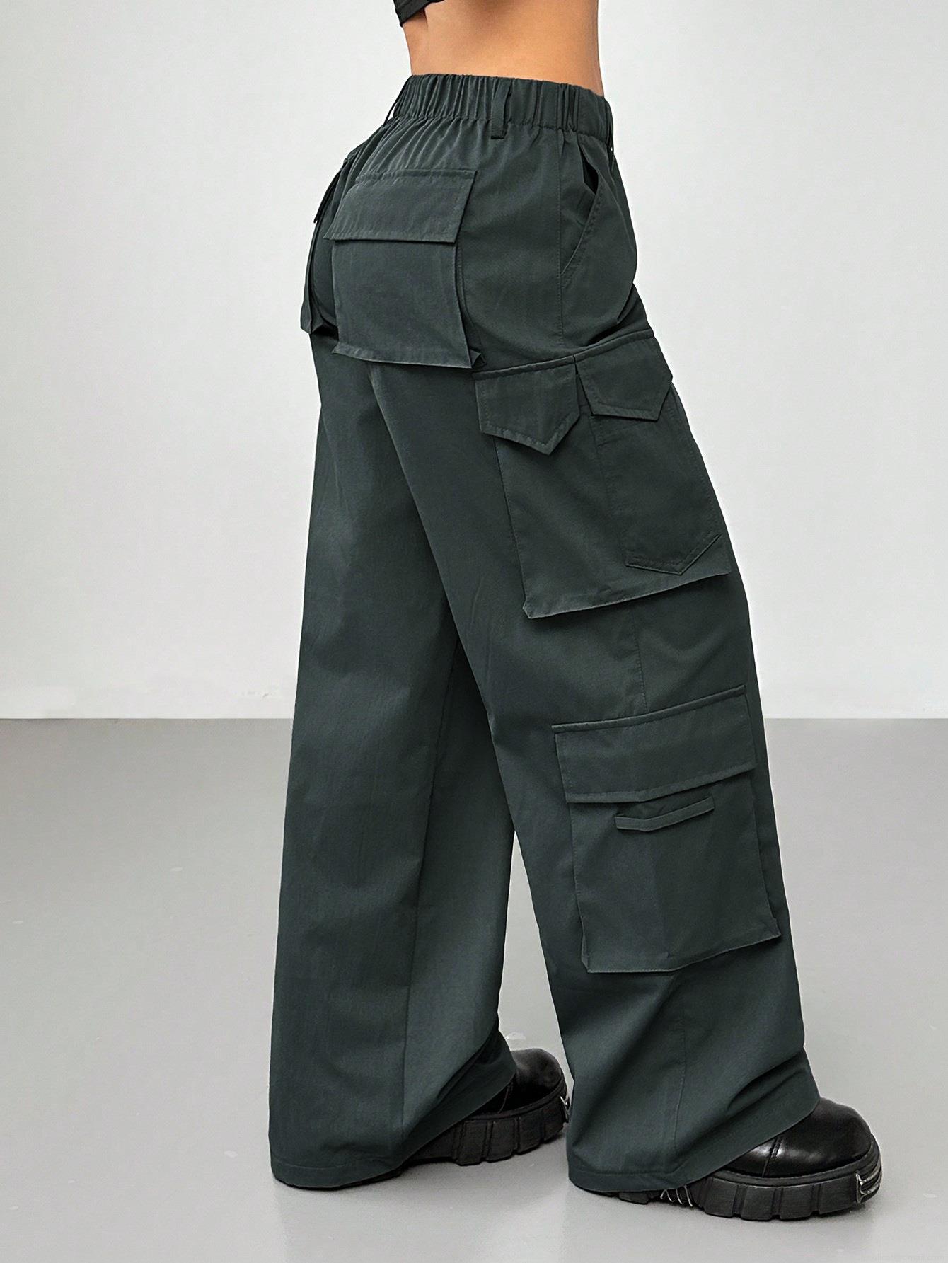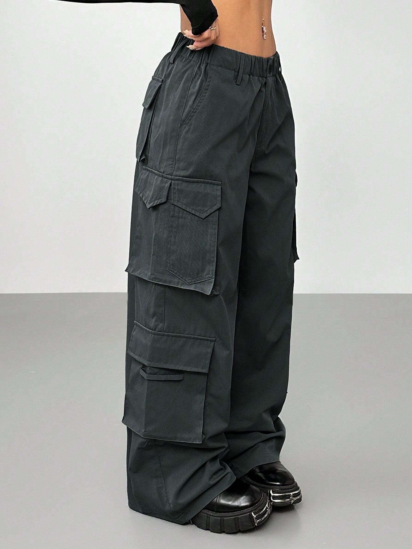 • Women High Waisted Cargo Pants 100% Polyester Wide Leg Multi-Pocket Elastic Waist Streetwear Casual Vintage Y2K Style Loose Trousers For Women