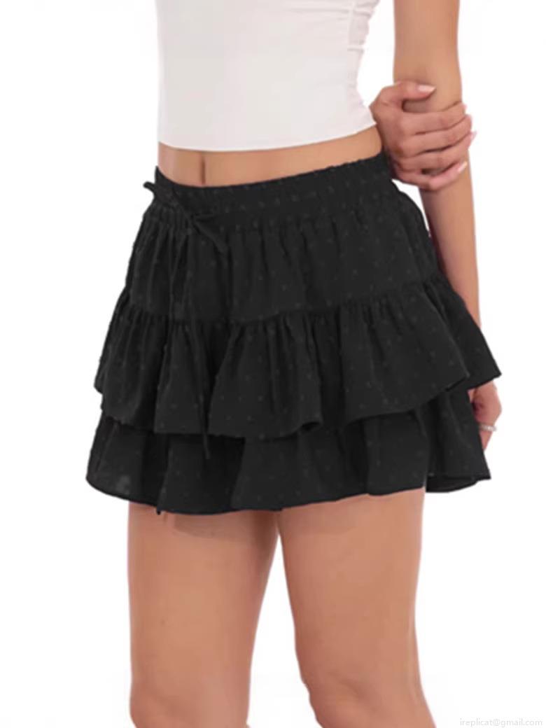 Solid Color, Polka Dots, Elastic Waistband, Lace-up Decoration, Layered Ruffles, Cake Skirt, Swiss Polka Dot Jacquard