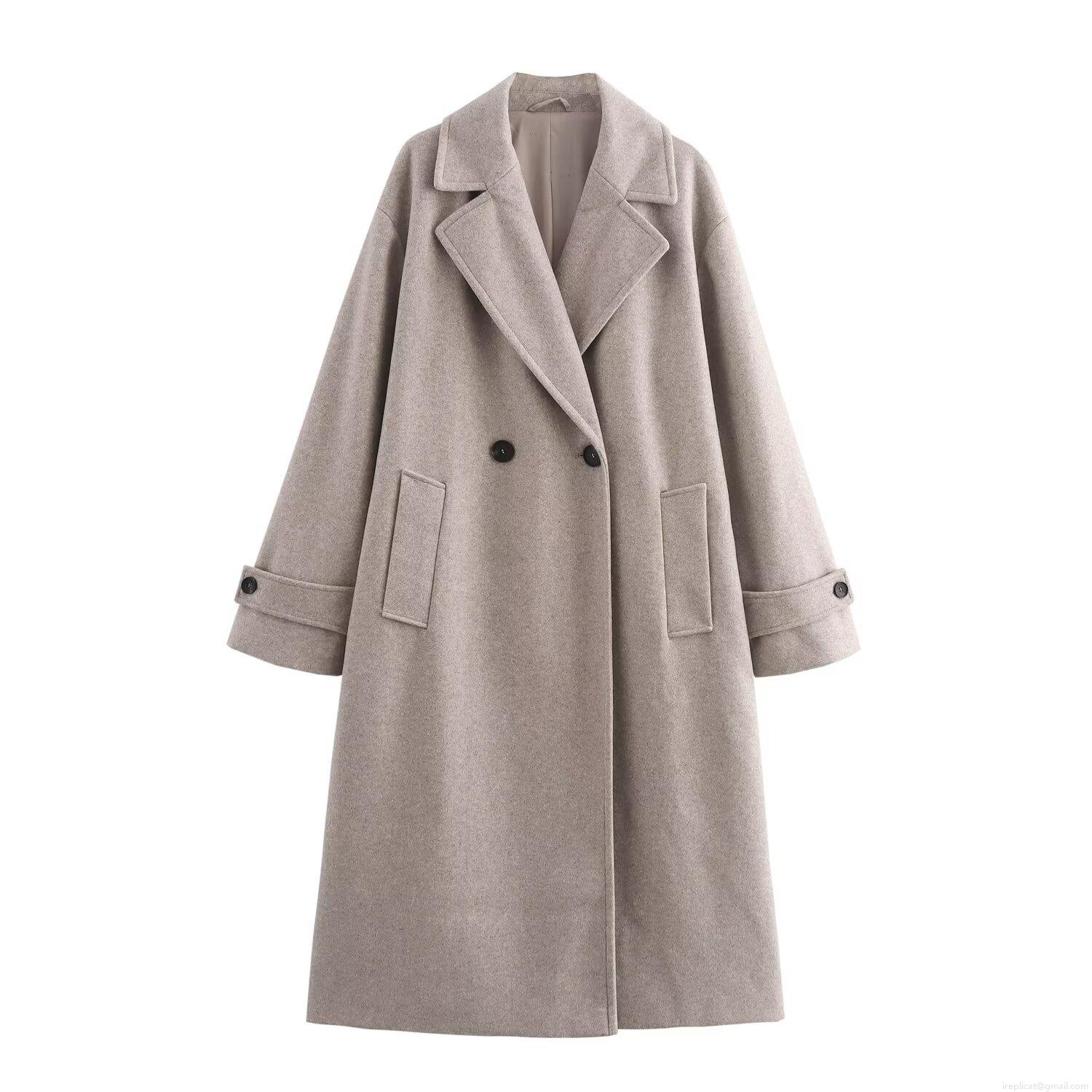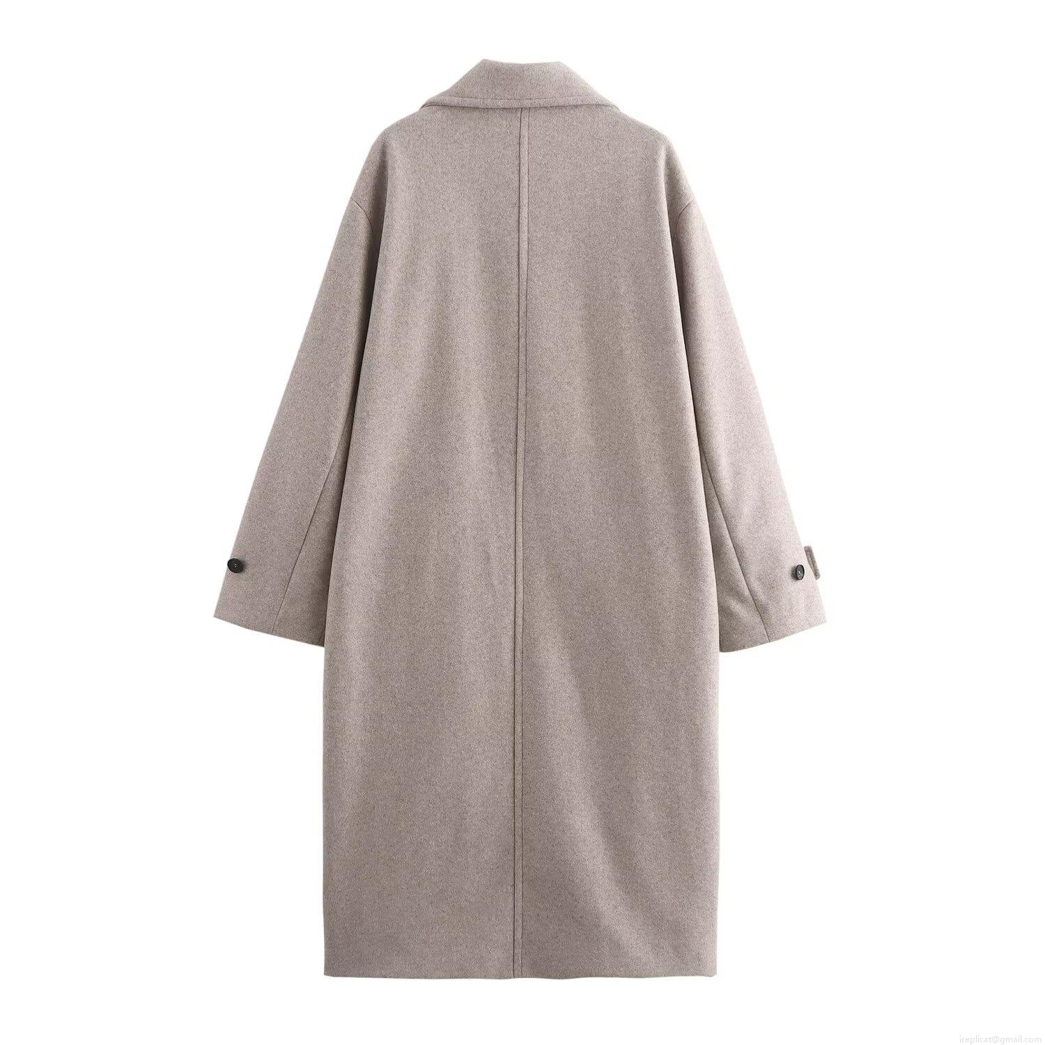 • Women Long Woolen Coat Double Breasted Rever Collar Loose Fit Solid Color Polyester Overcoat Outerwear Autumn Winter Casual Streetwear Ladies