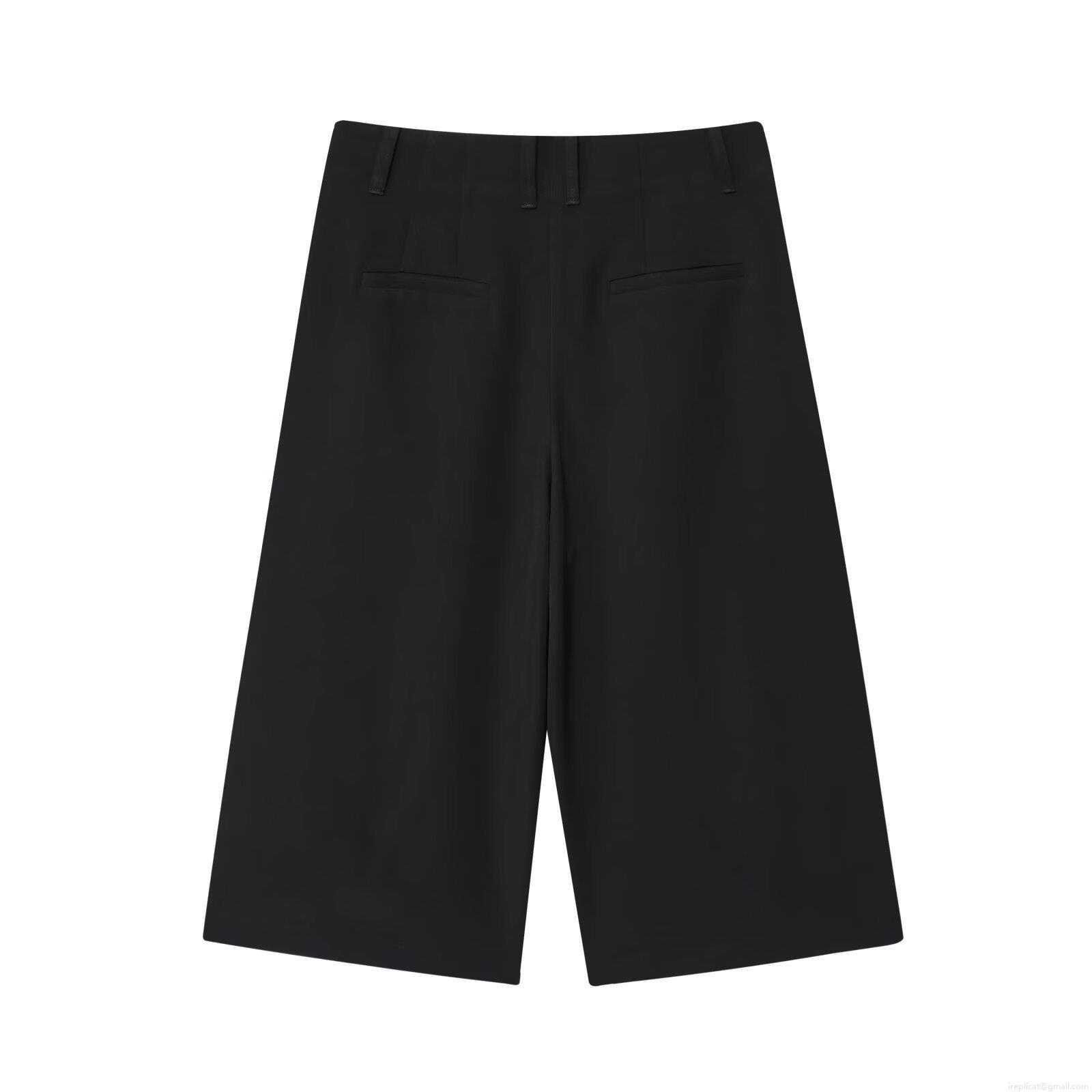 • Women Minimalist Mid-Length Wide Leg Shorts High Waist Polyester Suit Fabric Casual Solid Color Bermuda Shorts For Daily Wear