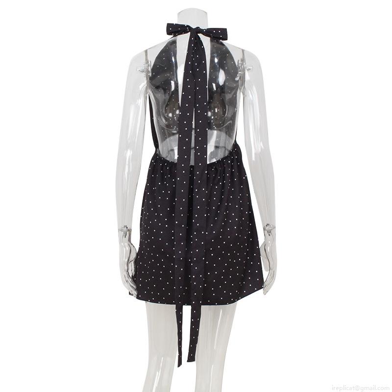 Polka Dot Print, Deep V-neck, Halter Neck And Backless