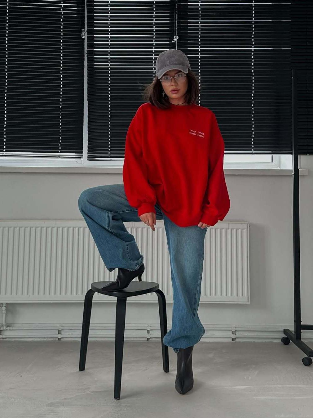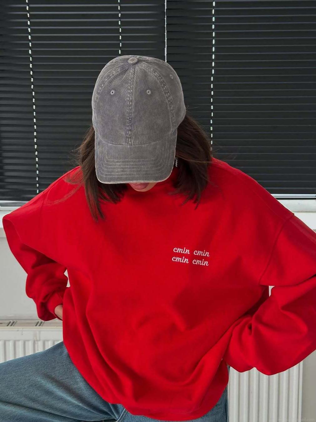 • Women Red Oversized Sweatshirt 100% Cotton Letter Embroidery Crew Neck Long Sleeve Streetwear Pullover Casual Autumn Loose Fashionable Top For Women