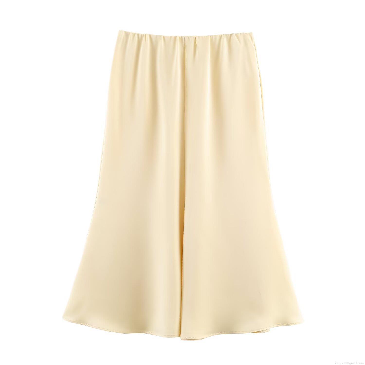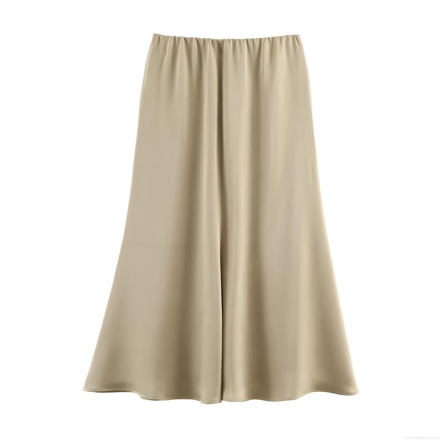 5 stars – This satin midi skirt is **an absolute wardrobe staple!** The high-quality polyester satin fabric is incredibly smooth, silky, and has a beautiful lustrous finish that catches the light perfectly. The high waist with elastic offers a comfortable, customized fit that sits flat against the skin, instantly accentuating the figure. True to size, the solid color design is minimalist yet elegant, making it extremely versatile for various occasions. It drapes beautifully with a flowing A-line silhouette that's perfect for the office, casual streetwear looks, or even dinner dates. The stitching is neat and durable, and the fabric feels luxurious against the skin. Whether you're dressing it up for a party or keeping it chic for work, this skirt delivers style and comfort. 10/10 reco
