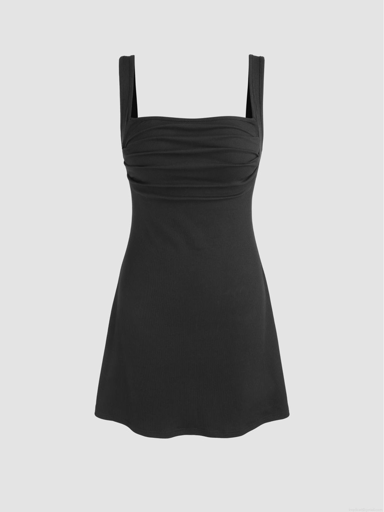 Women Sexy Backless Ribbed Knit Mini Dress Square Neck Ruched Sleeveless Bodycon Party Club Dress In Polyester And Elastane
