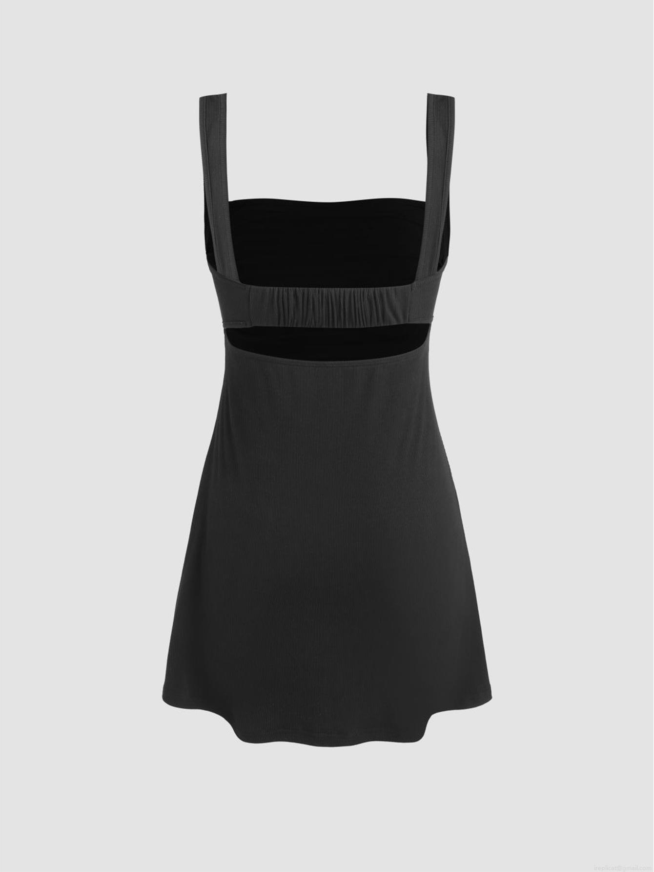 Solid Color, Hollow Out, Ribbed, Backless, Gathering, Square Collar