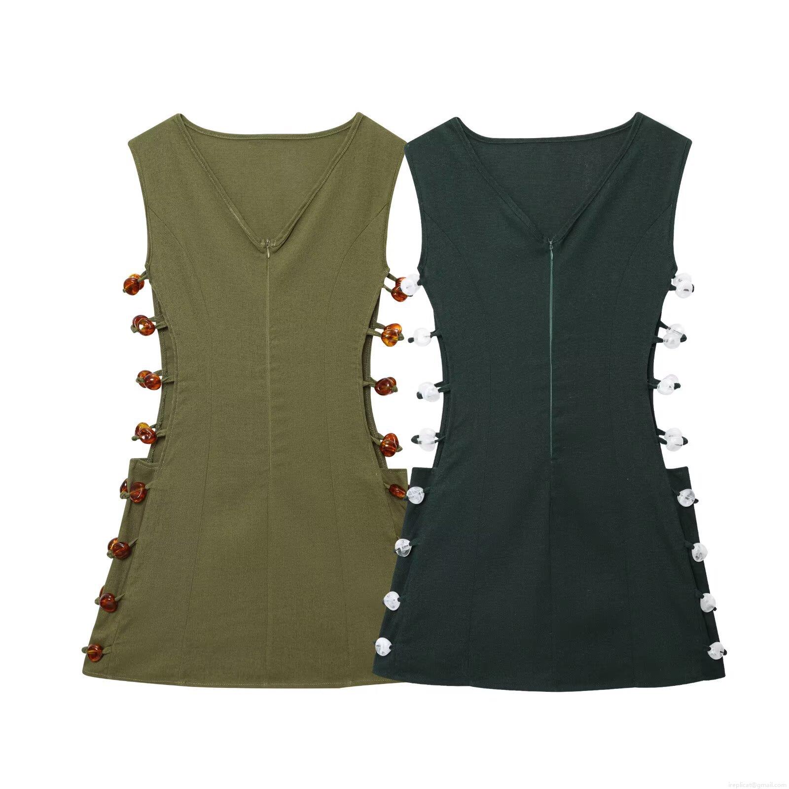 • Women Sexy Cut-Out Beaded Mini Dress Cotton Linen Feel Sleeveless Hollow Out Summer Vacation Bodycon Short Dress Elegant Party Clubwear