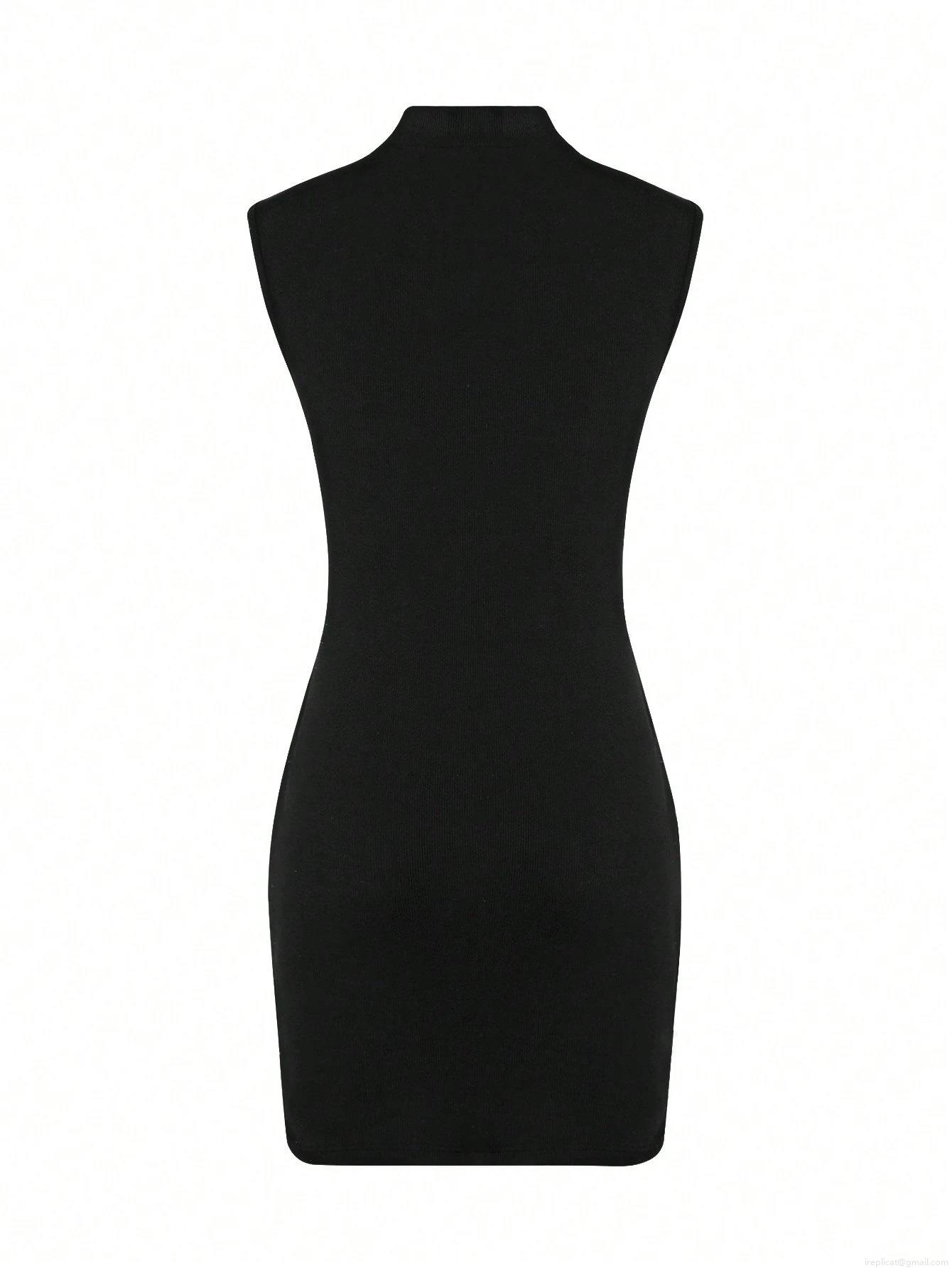 • Women Sexy Cutout High Neck Sleeveless Ribbed Knit Bodycon Mini Dress Summer Elegant Slim Fit Party Clubwear Dress