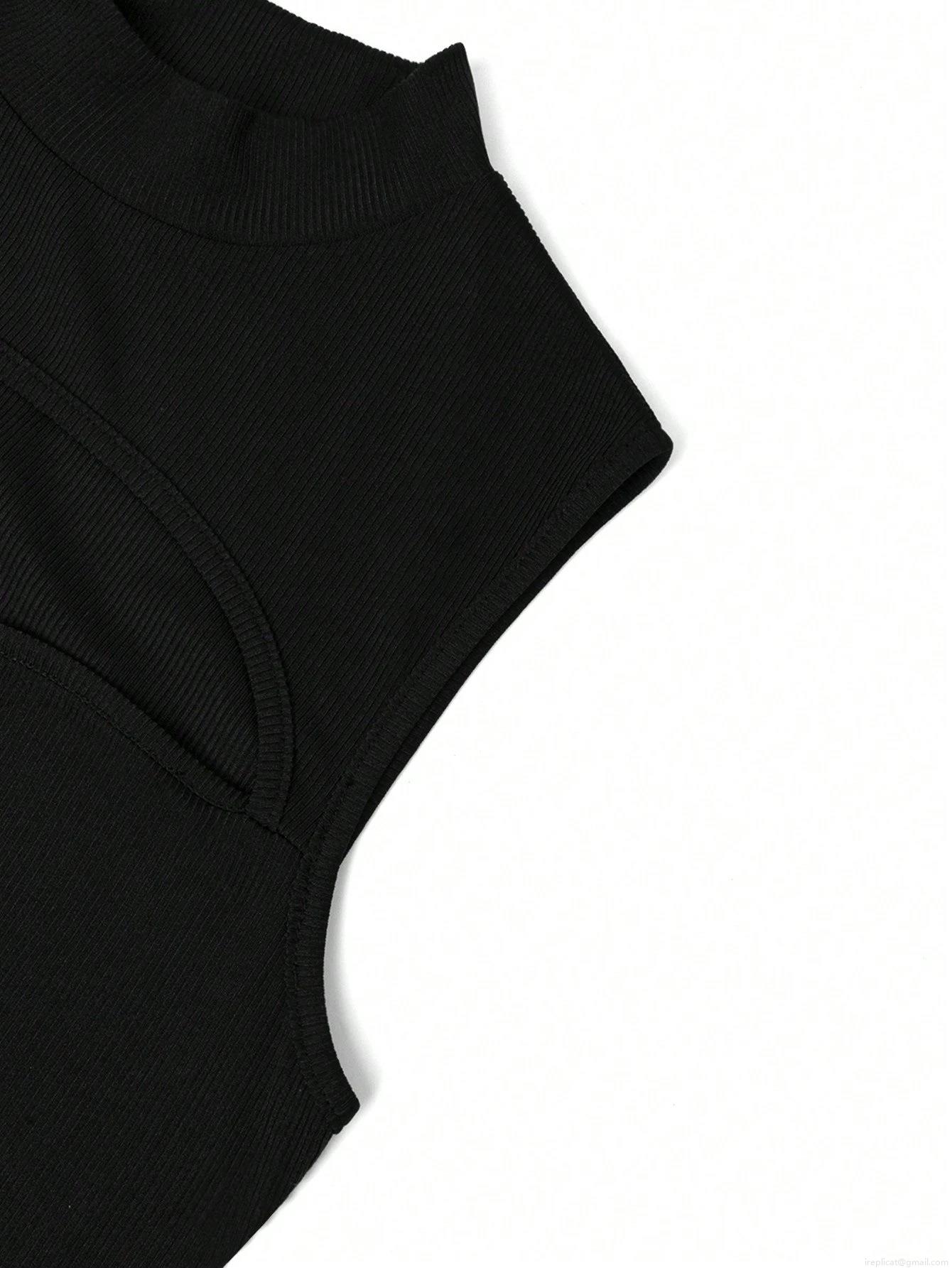 Women Sexy Cutout High Neck Sleeveless Ribbed Knit Bodycon Mini Dress Summer Elegant Slim Fit Party Clubwear Dress