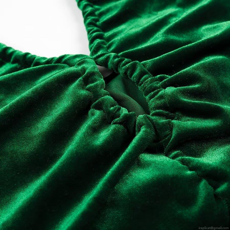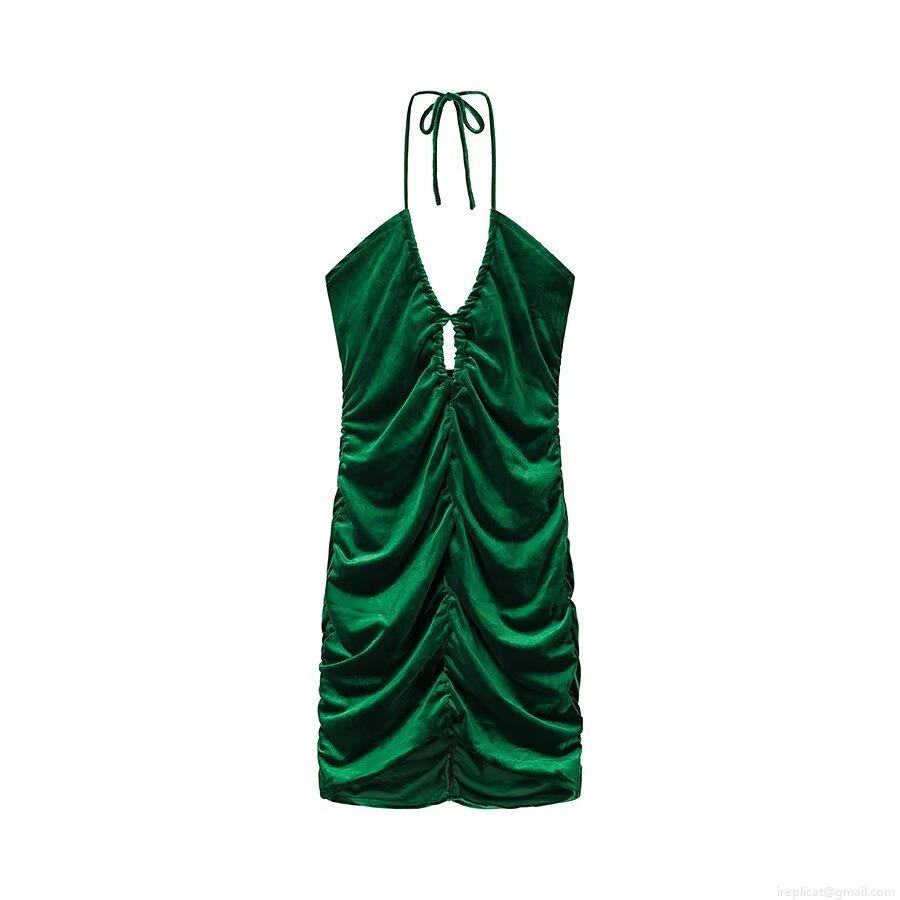 • Women Sexy Halter Neck Velvet Mini Dress Backless Ruched Bodycon Party Dress Hollow Out Sleeveless Dark Green Evening Clubwear For Ladies